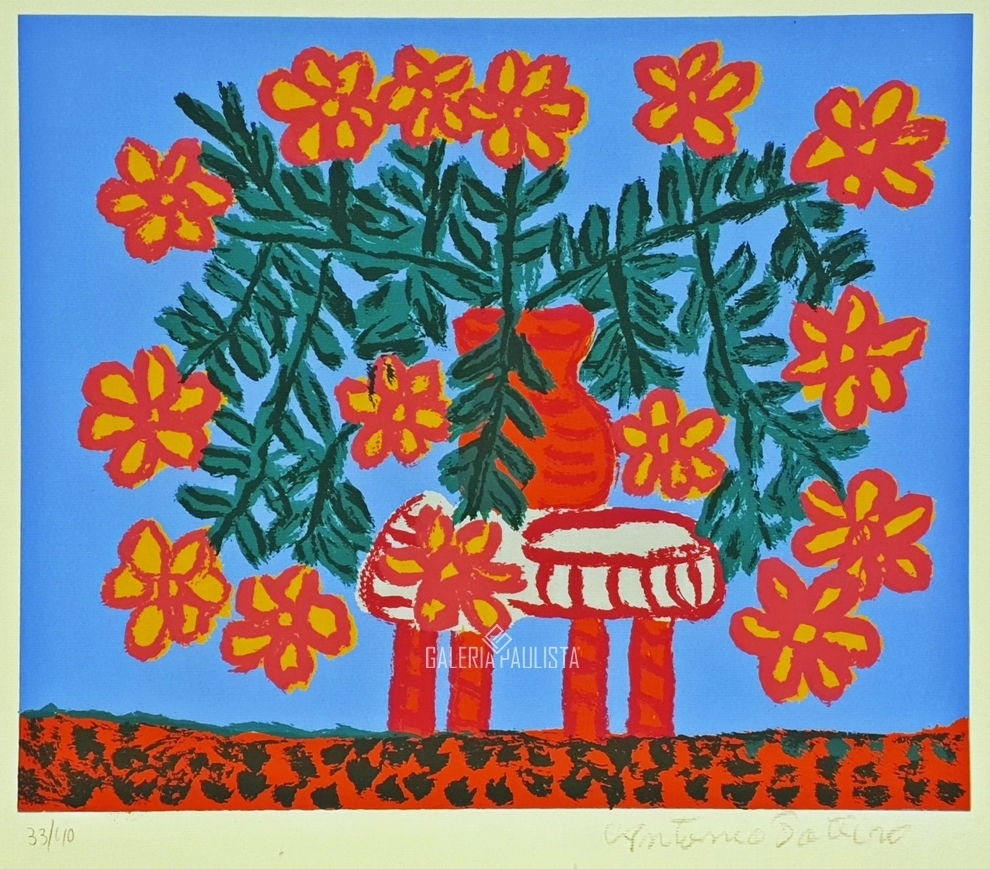 1972 – Já conhecido como ceramista, foi incentivado pelos artistas plásticos Siron Franco e Cleber Gouvęa a dedicar-se ŕ pintura, bem como a colorir as peças que esculpia.