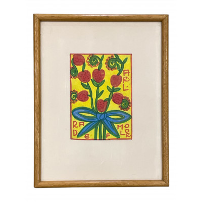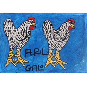 Antonio Roseno de Lima - Galo - técnica mista s/ papel - ass.centro e no verso - Indaiatuba 1979 - 20x29 cm - no verso esboço de cavalo em grafite.