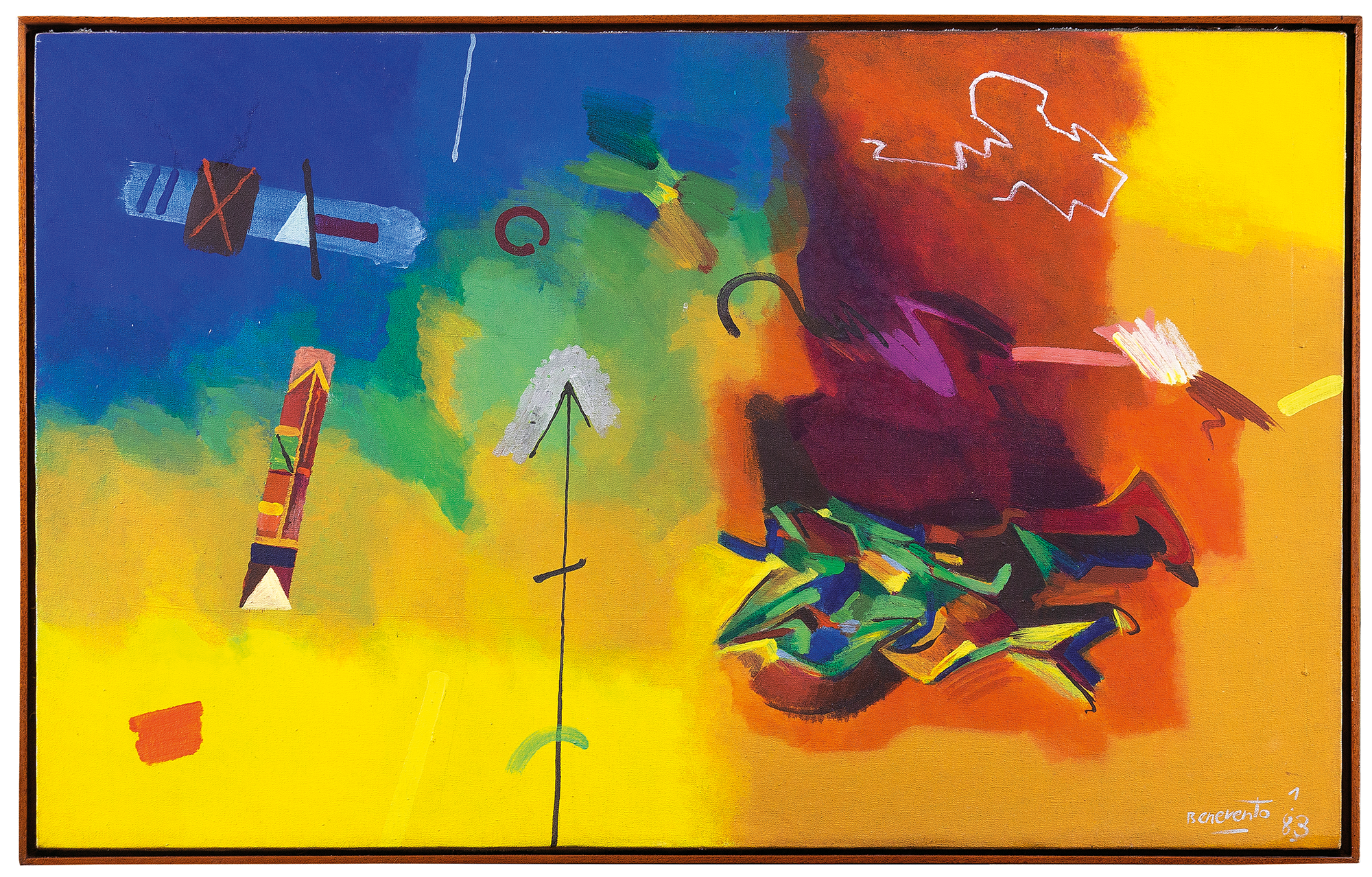 Antônio Sérgio Benevento (1945: Nova Friburgo, RJ). Pintor e cenógrafo. Artista figurativista, de temas populares. 1963 – Estudou na Escola Fluminense de Belas Artes, em Niterói. 1964-65 – Frequentou a Escola Nacional de Belas Artes, no Rio de Janeiro. 1965-68 – Participou do Grupo Diálogo, com o qual realizou exposições pelo país. 1969 – Realizou sua primeira exposição individual, no Rio de Janeiro. 1977-81 – Fez o curso de cenografia na Escola de Teatro da UniRio. 1981 – Expôs na Galeria Bonino, recebendo prêmio de Melhor Exposição Individual do Ano, concedido pela Associação Internacional de Críticos de Arte.