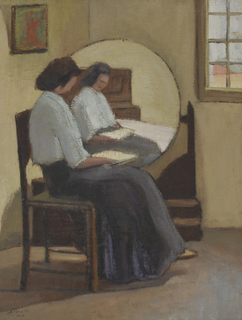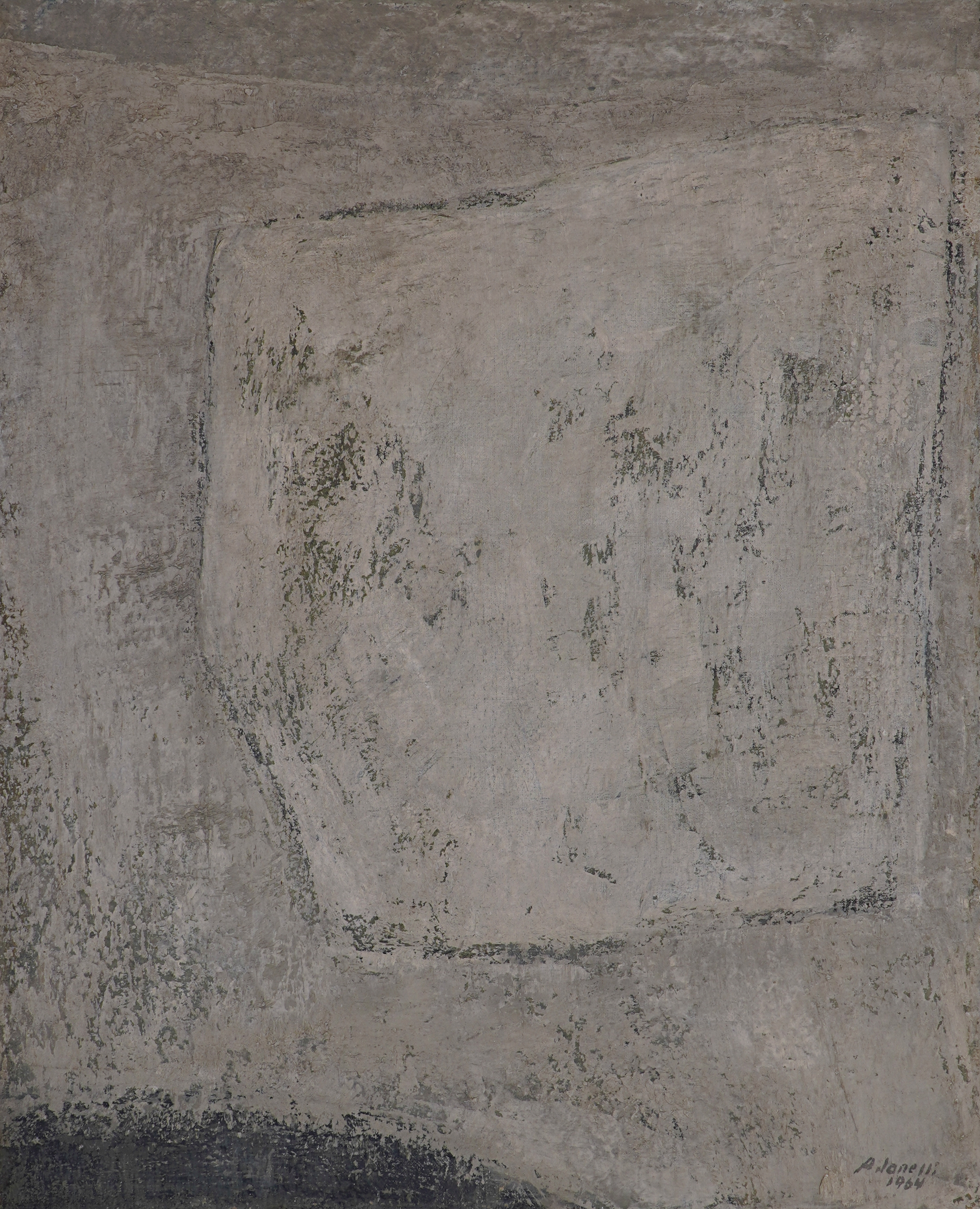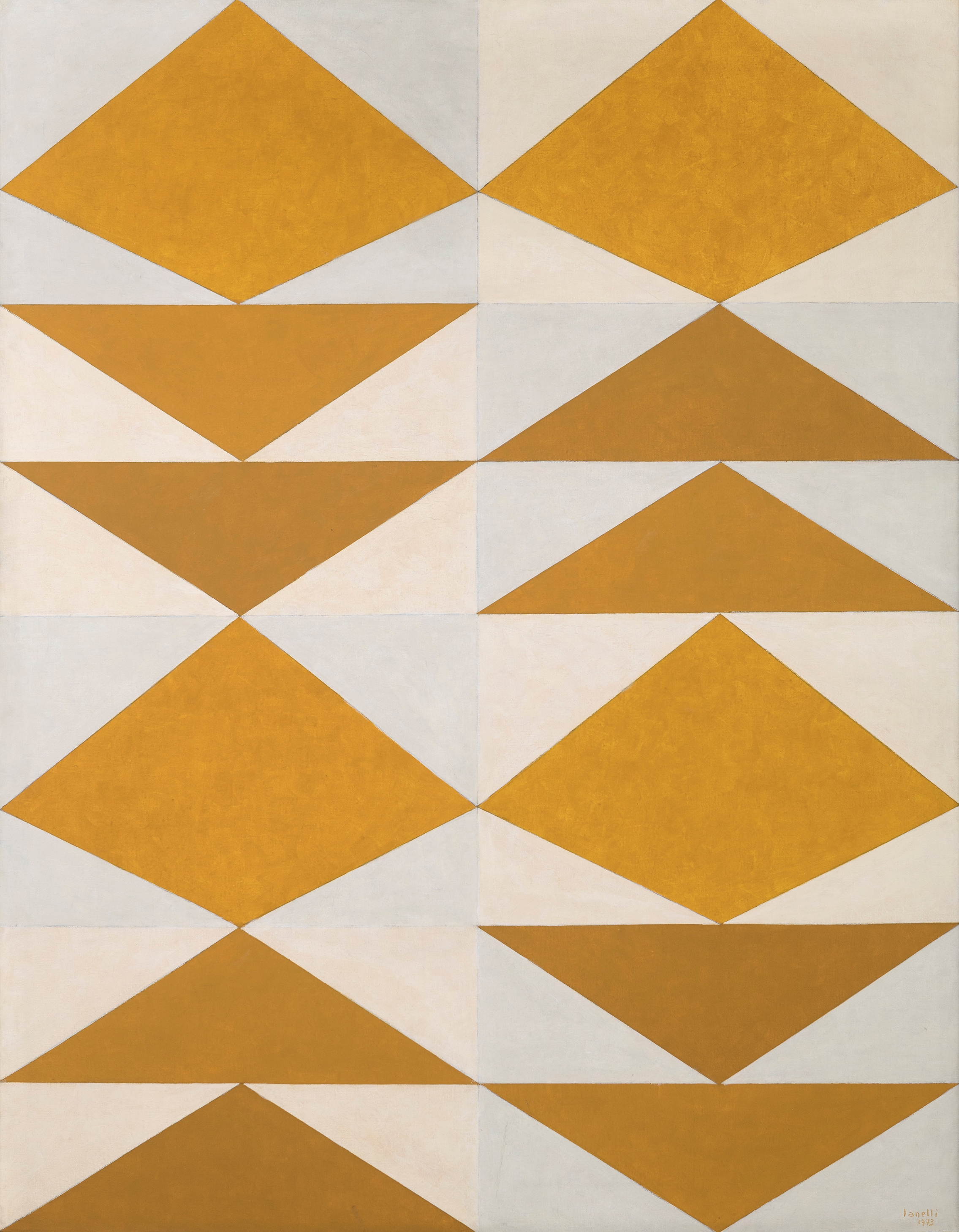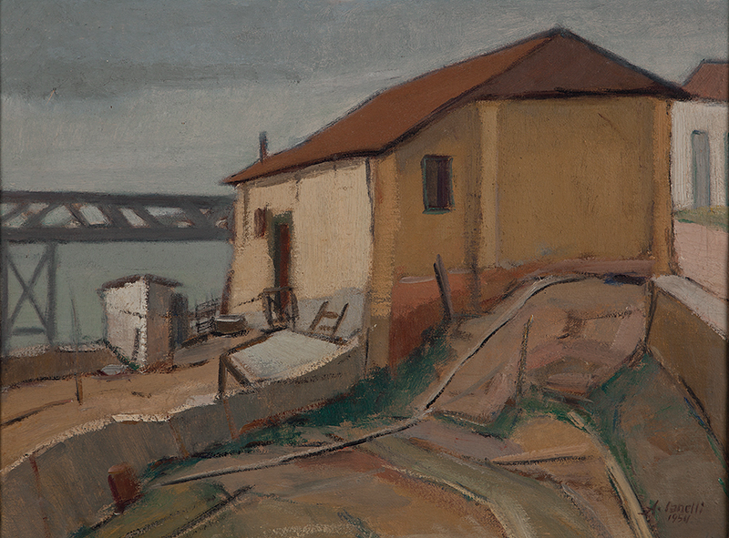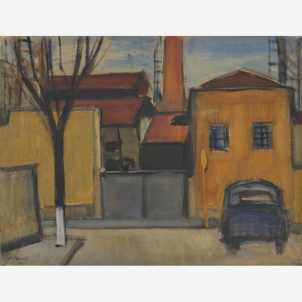 Arcangelo Ianelli (São Paulo SP 1922 - idem 2009). Pintor, escultor, ilustrador e desenhista. Inicia-se no desenho como autodidata. Em 1940, estuda perspectiva na Associação Paulista de Belas Artes e, em 1942, recebe orientação em pintura de Colette Pujol. Dois anos depois, freqüenta o ateliê de Waldemar da Costa com Lothar Charoux, Hermelindo Fiaminghi e Maria Leontina. Durante a década de 1950 integra o Grupo Guanabara juntamente com Manabu Mabe,Yoshiya Takaoka, Jorge Mori, Tomoo Handa, Tikashi Fukushima e Wega Nery, entre outros. A partir da década de 1940, produz cenas cotidianas, paisagens urbanas e marinhas, que revelam grande síntese formal e uma gama cromática em tons rebaixados. Por volta dos anos 1960, volta-se ao abstracionismo informal e produz telas que apresentam densidade matérica e cores escuras. No fim dos anos 1960, sua obra é ao mesmo tempo linear e pictórica, onde se destaca o uso de grafismos. Já a partir de 1970, volta-se à abstração geométrica e emprega principalmente retângulos e quadrados, que se apresentam como planos superpostos e interpenetrados. Atua ainda como escultor, desde a metade da década de 1970, quando realiza obras em mármore e em madeira, nas quais retoma questões constantes na obra pictórica. Em 2002, comemora os seus 80 anos com retrospectiva montada pela Pinacoteca do Estado de São Paulo - Pesp.