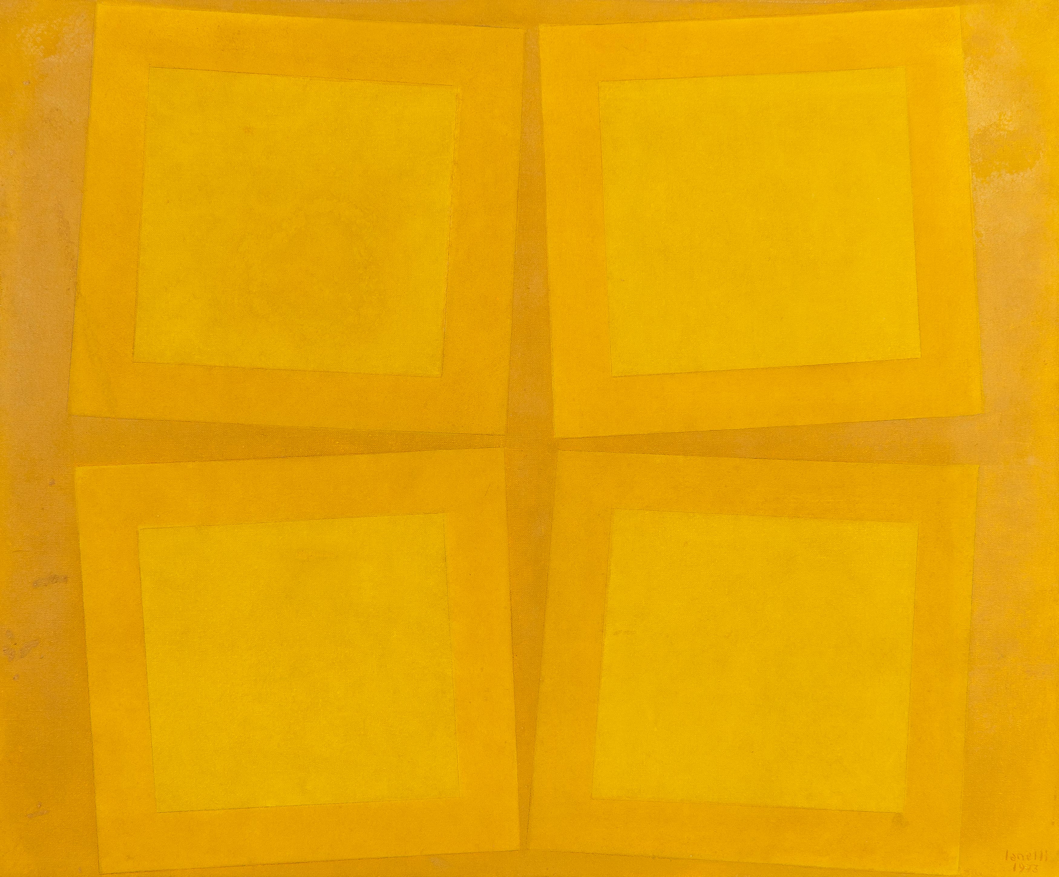 Arcangelo Ianelli (São Paulo SP 1922 - idem 2009). Pintor, escultor, ilustrador e desenhista. Inicia-se no desenho como autodidata. Em 1940, estuda perspectiva na Associação Paulista de Belas Artes e, em 1942, recebe orientação em pintura de Colette Pujol. Dois anos depois, freqüenta o ateliê de Waldemar da Costa com Lothar Charoux, Hermelindo Fiaminghi e Maria Leontina. Durante a década de 1950 integra o Grupo Guanabara juntamente com Manabu Mabe,Yoshiya Takaoka, Jorge Mori, Tomoo Handa, Tikashi Fukushima e Wega Nery, entre outros. A partir da década de 1940, produz cenas cotidianas, paisagens urbanas e marinhas, que revelam grande síntese formal e uma gama cromática em tons rebaixados. Por volta dos anos 1960, volta-se ao abstracionismo informal e produz telas que apresentam densidade matérica e cores escuras. No fim dos anos 1960, sua obra é ao mesmo tempo linear e pictórica, onde se destaca o uso de grafismos. Já a partir de 1970, volta-se à abstração geométrica e emprega principalmente retângulos e quadrados, que se apresentam como planos superpostos e interpenetrados. Atua ainda como escultor, desde a metade da década de 1970, quando realiza obras em mármore e em madeira, nas quais retoma questões constantes na obra pictórica. Em 2002, comemora os seus 80 anos com retrospectiva montada pela Pinacoteca do Estado de São Paulo - Pesp.