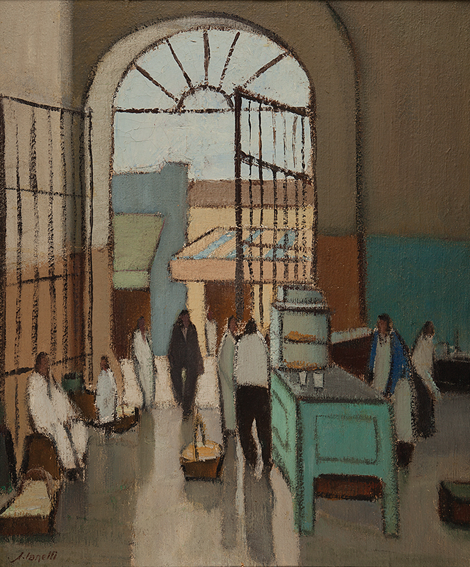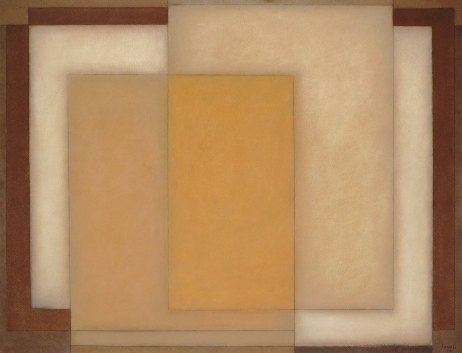Arcangelo Ianelli (São Paulo SP 1922 - idem 2009). Pintor, escultor, ilustrador e desenhista. Inicia-se no desenho como autodidata. Em 1940, estuda perspectiva na Associação Paulista de Belas Artes e, em 1942, recebe orientação em pintura de Colette Pujol. Dois anos depois, freqüenta o ateliê de Waldemar da Costa com Lothar Charoux, Hermelindo Fiaminghi e Maria Leontina. Durante a década de 1950 integra o Grupo Guanabara juntamente com Manabu Mabe,Yoshiya Takaoka, Jorge Mori, Tomoo Handa, Tikashi Fukushima e Wega Nery, entre outros. A partir da década de 1940, produz cenas cotidianas, paisagens urbanas e marinhas, que revelam grande síntese formal e uma gama cromática em tons rebaixados. Por volta dos anos 1960, volta-se ao abstracionismo informal e produz telas que apresentam densidade matérica e cores escuras. No fim dos anos 1960, sua obra é ao mesmo tempo linear e pictórica, onde se destaca o uso de grafismos. Já a partir de 1970, volta-se à abstração geométrica e emprega principalmente retângulos e quadrados, que se apresentam como planos superpostos e interpenetrados. Atua ainda como escultor, desde a metade da década de 1970, quando realiza obras em mármore e em madeira, nas quais retoma questões constantes na obra pictórica. Em 2002, comemora os seus 80 anos com retrospectiva montada pela Pinacoteca do Estado de São Paulo - Pesp.