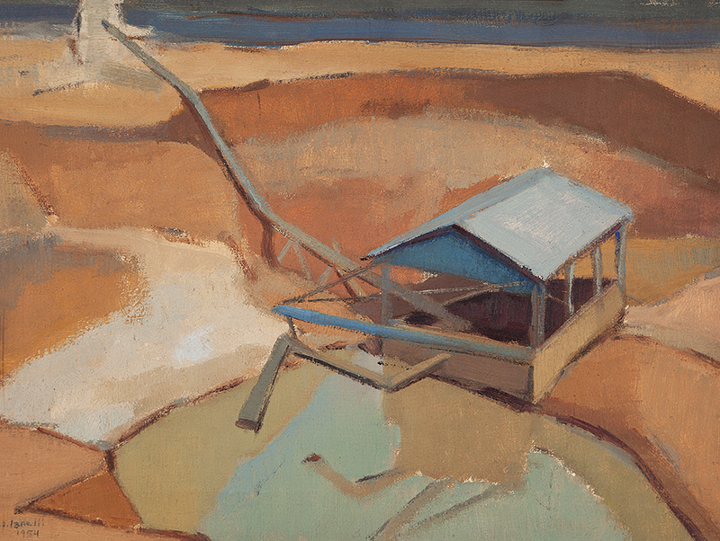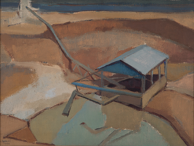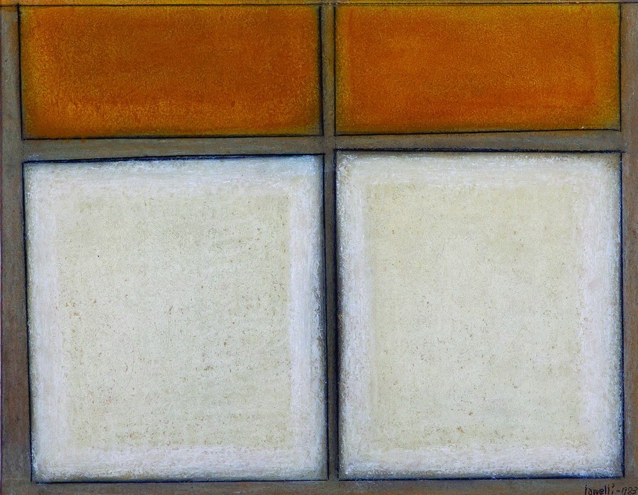 Arcangelo Ianelli (São Paulo SP 1922 - idem 2009). Pintor, escultor, ilustrador e desenhista. Inicia-se no desenho como autodidata. Em 1940, estuda perspectiva na Associação Paulista de Belas Artes e, em 1942, recebe orientação em pintura de Colette Pujol. Dois anos depois, freqüenta o ateliê de Waldemar da Costa com Lothar Charoux, Hermelindo Fiaminghi e Maria Leontina. Durante a década de 1950 integra o Grupo Guanabara juntamente com Manabu Mabe,Yoshiya Takaoka, Jorge Mori, Tomoo Handa, Tikashi Fukushima e Wega Nery, entre outros. A partir da década de 1940, produz cenas cotidianas, paisagens urbanas e marinhas, que revelam grande síntese formal e uma gama cromática em tons rebaixados. Por volta dos anos 1960, volta-se ao abstracionismo informal e produz telas que apresentam densidade matérica e cores escuras. No fim dos anos 1960, sua obra é ao mesmo tempo linear e pictórica, onde se destaca o uso de grafismos. Já a partir de 1970, volta-se à abstração geométrica e emprega principalmente retângulos e quadrados, que se apresentam como planos superpostos e interpenetrados. Atua ainda como escultor, desde a metade da década de 1970, quando realiza obras em mármore e em madeira, nas quais retoma questões constantes na obra pictórica. Em 2002, comemora os seus 80 anos com retrospectiva montada pela Pinacoteca do Estado de São Paulo - Pesp.