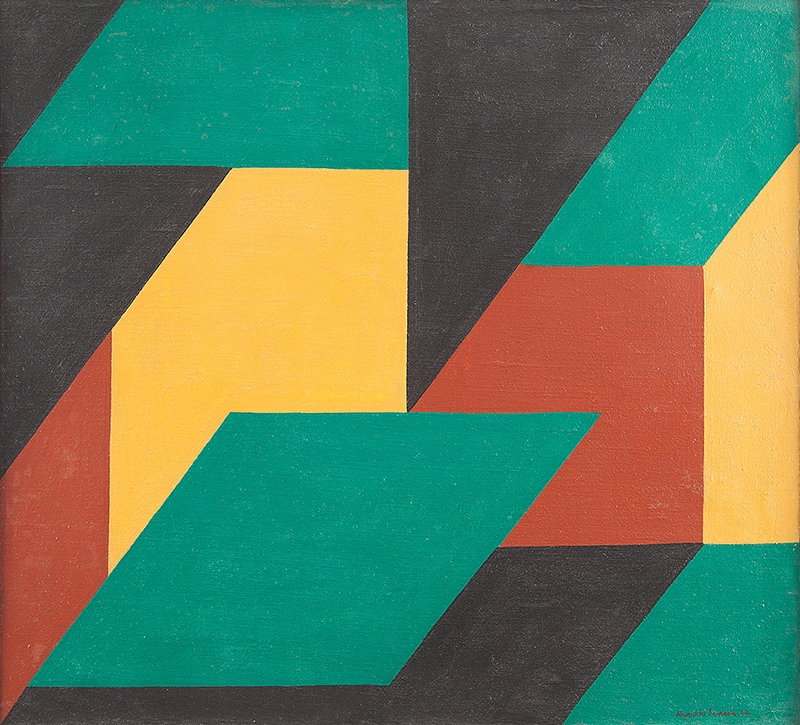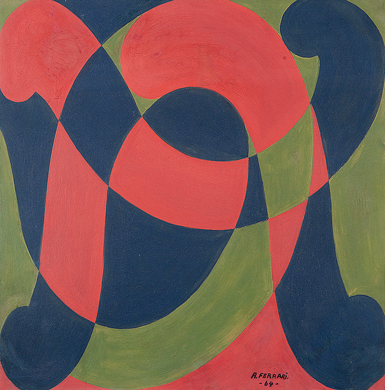 Arnaldo Ferrari - Composição Nº2 - 67 x 74 cm - Óleo sobre tela - Assinatura verso e Data 1966 - Selo do Paço das Artes exposição individual que o artista realizou