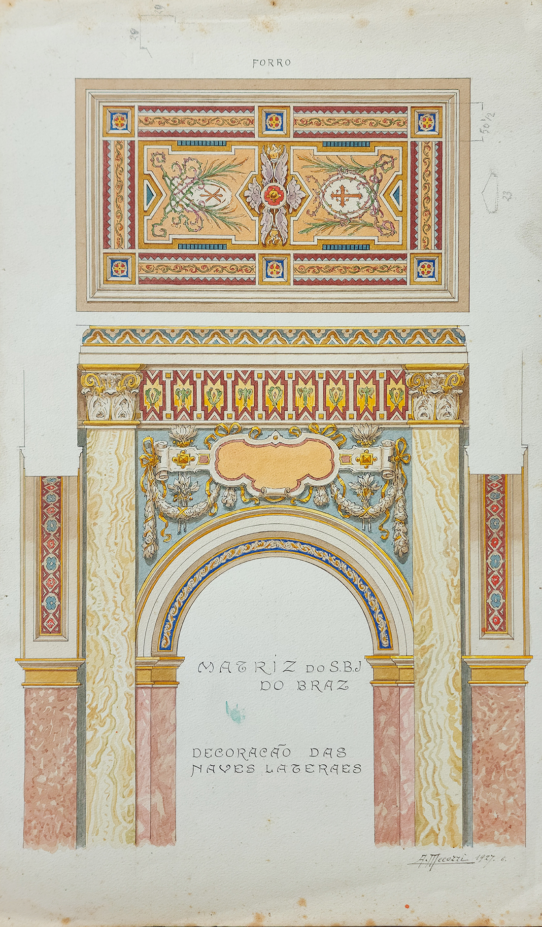 Sua maior obra foi a Catedral de Nossa Senhora do Desterro em Jundiaí onde realizou toda a decoração interna deste enorme e bem elaborado templo. Feito raro à época pois o comum seria contratar vários artistas, dividindo as áreas, como feito entre Mecozzi, Oscar Pereira e Calixto em Santos.