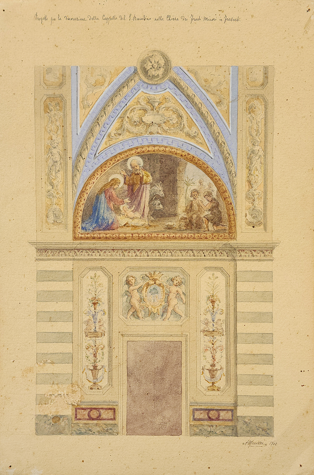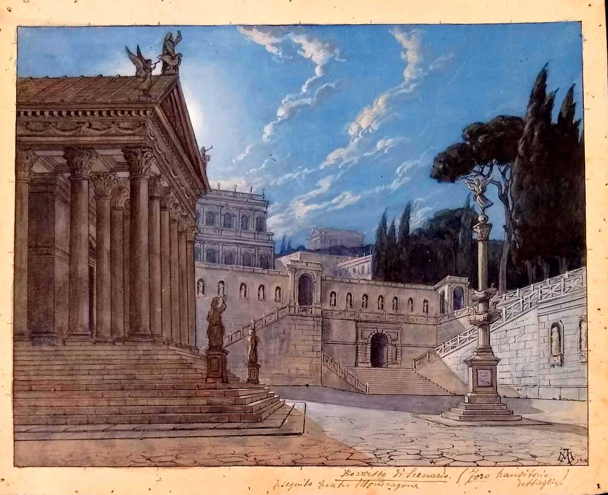 Trabalhou com o ilustre Cesare Mariani, acadêmico e presidente da Accademia di San Luca, que atuou sobretudo em Roma, onde foi o maior Affreschista do final do século XIX na Italia e trabalhou em inúmeros palácios e igrejas.