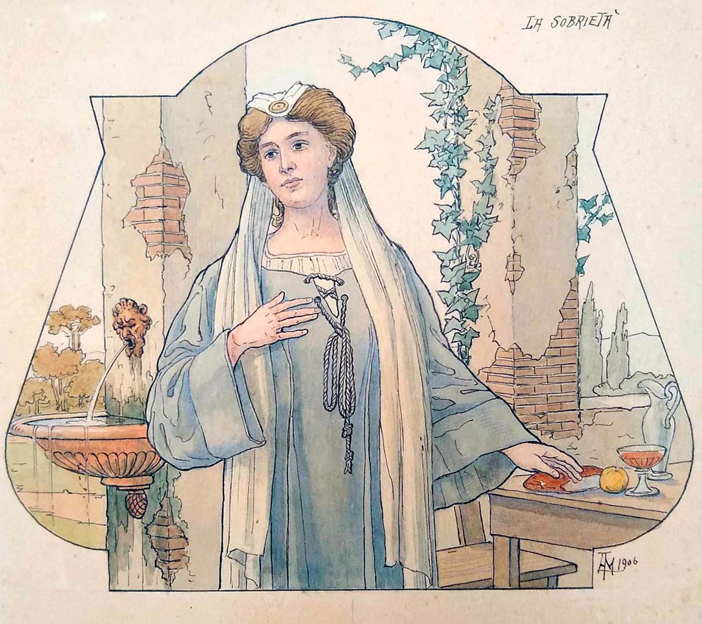 Affreschista de linguagem académica e ligada ao purismo tardio, coloca-a entre os representantes da tradição decorativa romana.