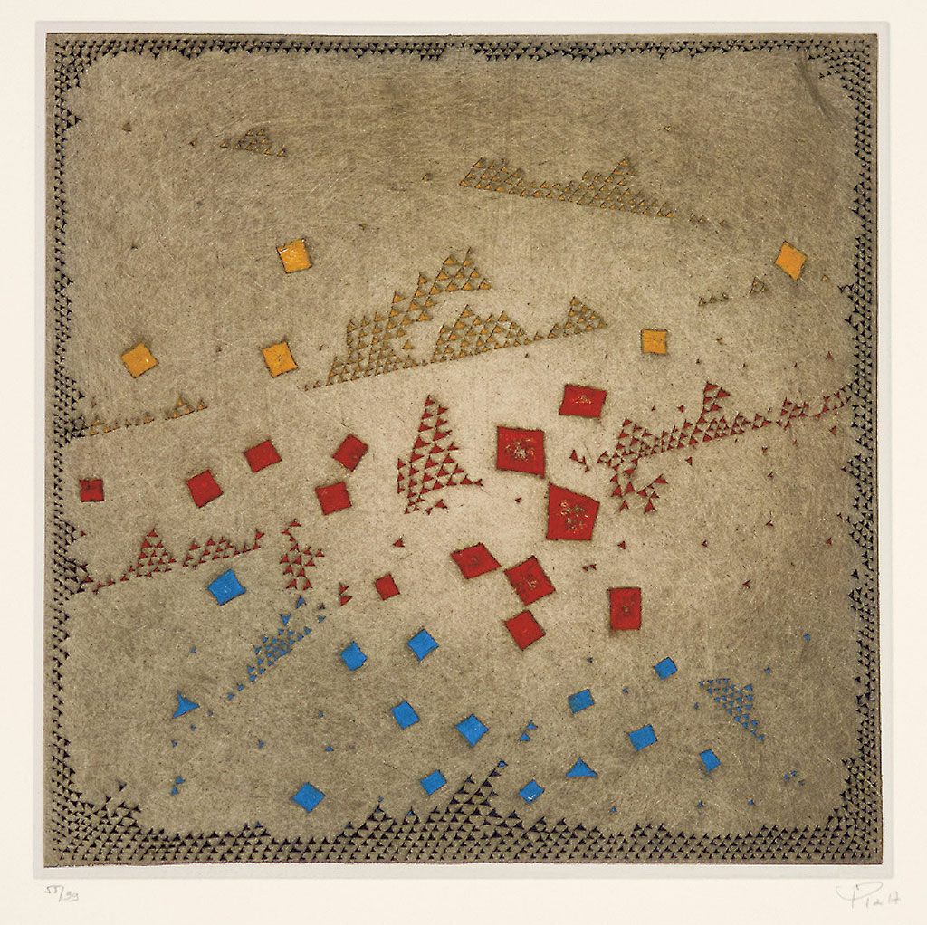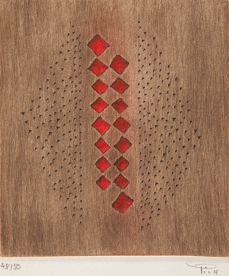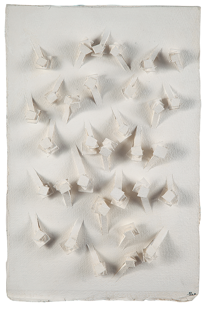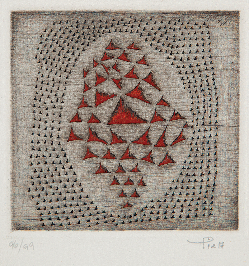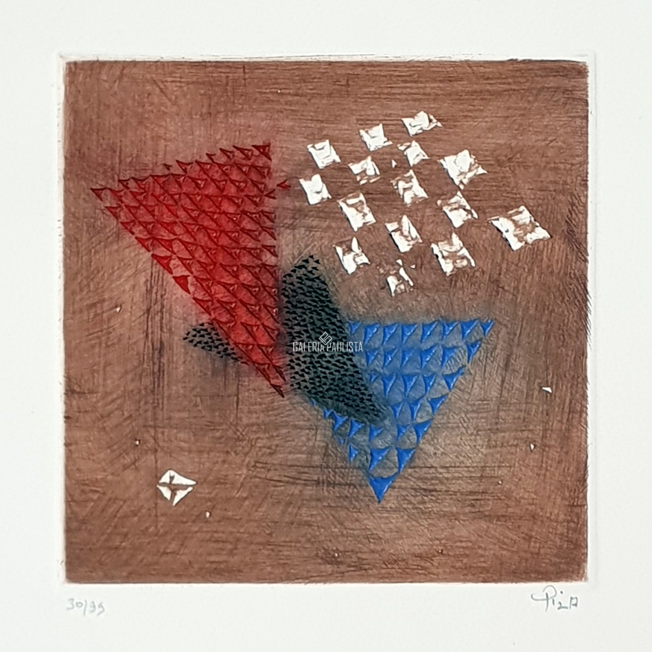 Arthur Luiz Piza (São Paulo SP 1928). Gravador, desenhista e escultor. Inicia a formação artística em 1943, estudando pintura e afresco com Antonio Gomide (1895 - 1967). Após participar da 1ª Bienal Internacional de São Paulo, em 1951, viaja para a Europa e passa a residir em Paris. Freqüenta o ateliê de Johnny Friedlaender (1912 - 1992) e aperfeiçoa-se nas técnicas de gravura em metal, água-forte, talho-doce, água-tinta e ponta-seca. Em 1953, participa da 2ª Bienal Internacional de São Paulo e obtém o prêmio aquisição. Na 5ª Bienal, em 1959, é contemplado com o grande prêmio nacional de gravura. Nesse período, começa a fazer relevos, picotando suas aquarelas e aproveitando os fragmentos em colagens sobre tela, papel, cobre e madeira. Posteriormente cria relevos de metal sobre sisal, e produz peças tridimensionais em grande escala e trabalhos em porcelana e ourivesaria. Realiza ilustrações para diversos livros, de tiragens reduzidas. No fim dos anos 1980, cria um mural tridimensional para o Centro Cultural da França, em Damasco, Síria. Em 2002, são apresentadas na Pinacoteca do Estado de São Paulo - Pesp, e no Museu de Arte do Rio Grande do Sul Ado Malagoli - Margs, em Porto Alegre, duas amplas retrospectivas de sua obra.