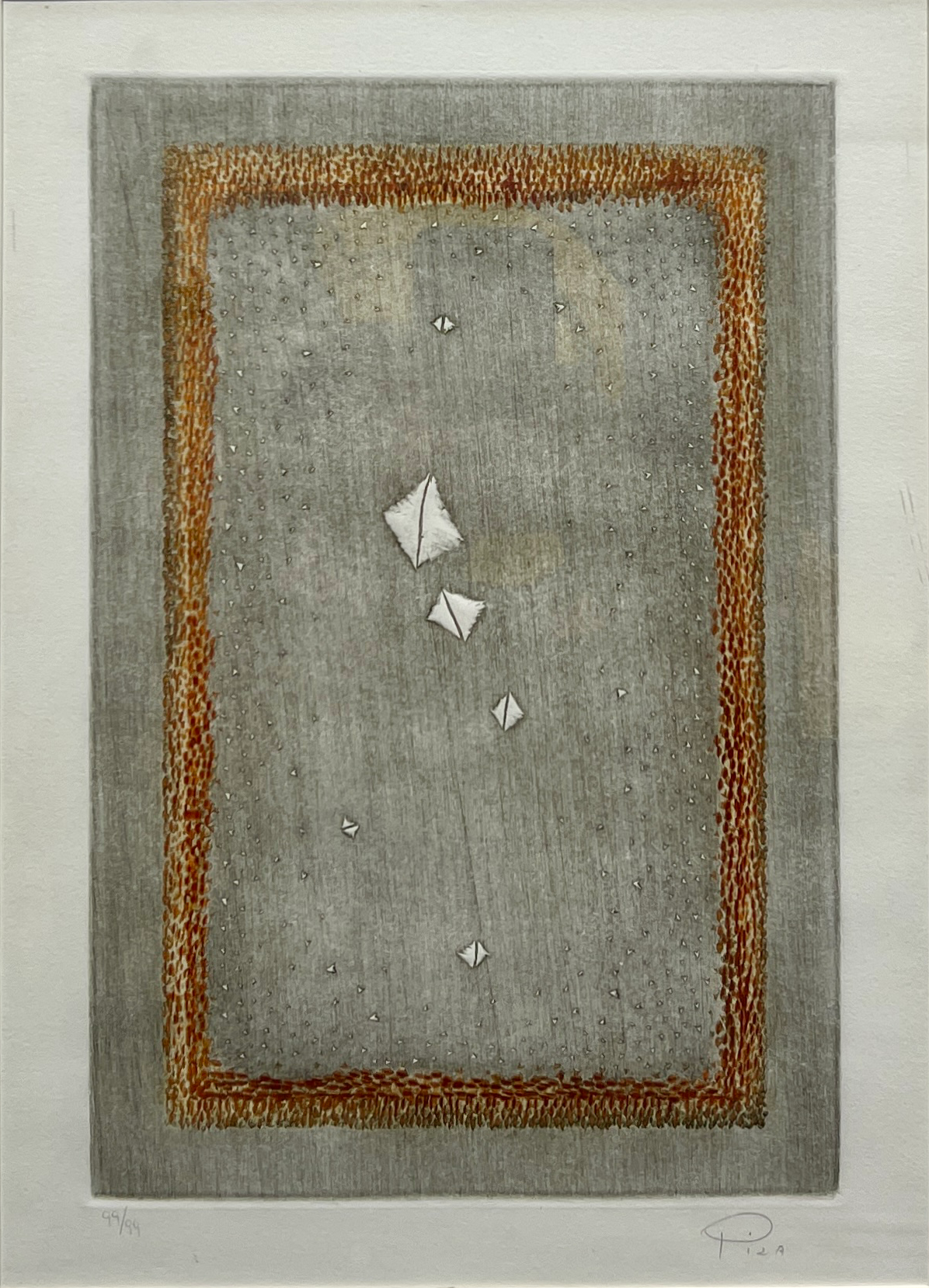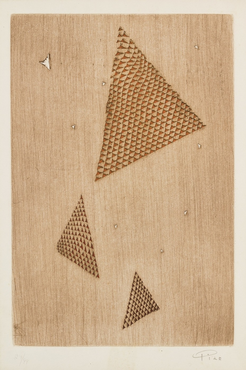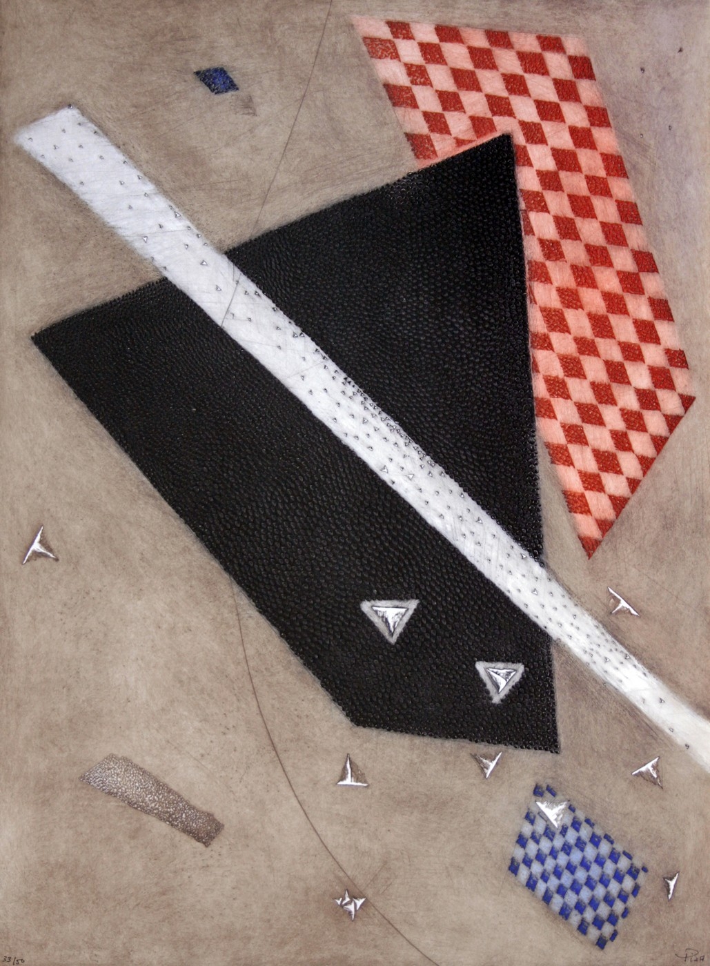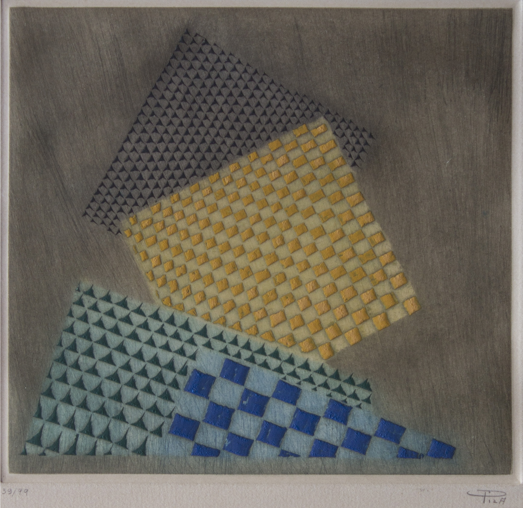 Arthur Luiz Piza (São Paulo SP 1928). Gravador, desenhista e escultor. Inicia a formação artística em 1943, estudando pintura e afresco com Antonio Gomide (1895 - 1967). Após participar da 1ª Bienal Internacional de São Paulo, em 1951, viaja para a Europa e passa a residir em Paris. Freqüenta o ateliê de Johnny Friedlaender (1912 - 1992) e aperfeiçoa-se nas técnicas de gravura em metal, água-forte, talho-doce, água-tinta e ponta-seca. Em 1953, participa da 2ª Bienal Internacional de São Paulo e obtém o prêmio aquisição. Na 5ª Bienal, em 1959, é contemplado com o grande prêmio nacional de gravura. Nesse período, começa a fazer relevos, picotando suas aquarelas e aproveitando os fragmentos em colagens sobre tela, papel, cobre e madeira. Posteriormente cria relevos de metal sobre sisal, e produz peças tridimensionais em grande escala e trabalhos em porcelana e ourivesaria. Realiza ilustrações para diversos livros, de tiragens reduzidas. No fim dos anos 1980, cria um mural tridimensional para o Centro Cultural da França, em Damasco, Síria. Em 2002, são apresentadas na Pinacoteca do Estado de São Paulo - Pesp, e no Museu de Arte do Rio Grande do Sul Ado Malagoli - Margs, em Porto Alegre, duas amplas retrospectivas de sua obra.