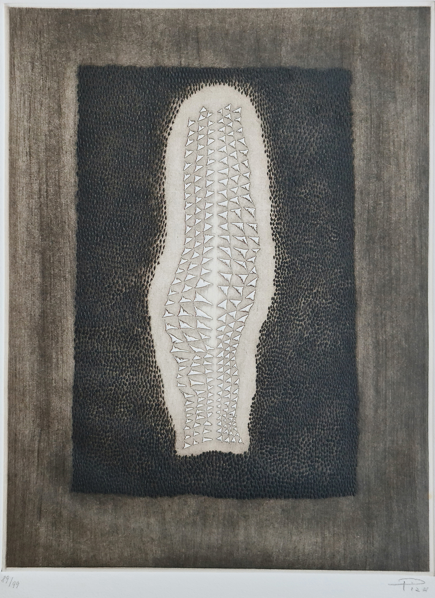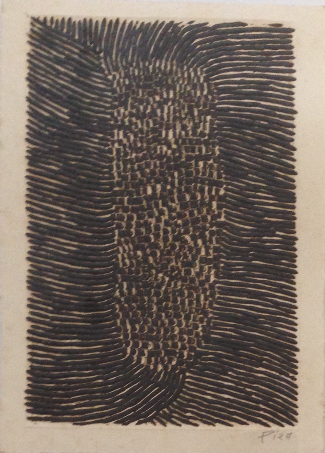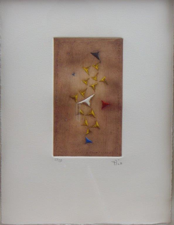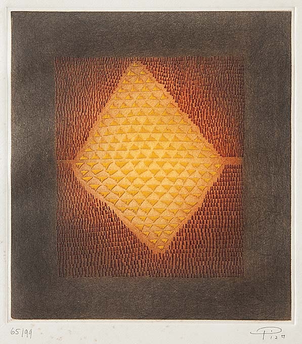 Arthur Luiz Piza (São Paulo SP 1928). Gravador, desenhista e escultor. Inicia a formação artística em 1943, estudando pintura e afresco com Antonio Gomide (1895 - 1967). Após participar da 1ª Bienal Internacional de São Paulo, em 1951, viaja para a Europa e passa a residir em Paris. Freqüenta o ateliê de Johnny Friedlaender (1912 - 1992) e aperfeiçoa-se nas técnicas de gravura em metal, água-forte, talho-doce, água-tinta e ponta-seca. Em 1953, participa da 2ª Bienal Internacional de São Paulo e obtém o prêmio aquisição. Na 5ª Bienal, em 1959, é contemplado com o grande prêmio nacional de gravura. Nesse período, começa a fazer relevos, picotando suas aquarelas e aproveitando os fragmentos em colagens sobre tela, papel, cobre e madeira. Posteriormente cria relevos de metal sobre sisal, e produz peças tridimensionais em grande escala e trabalhos em porcelana e ourivesaria. Realiza ilustrações para diversos livros, de tiragens reduzidas. No fim dos anos 1980, cria um mural tridimensional para o Centro Cultural da França, em Damasco, Síria. Em 2002, são apresentadas na Pinacoteca do Estado de São Paulo - Pesp, e no Museu de Arte do Rio Grande do Sul Ado Malagoli - Margs, em Porto Alegre, duas amplas retrospectivas de sua obra.
