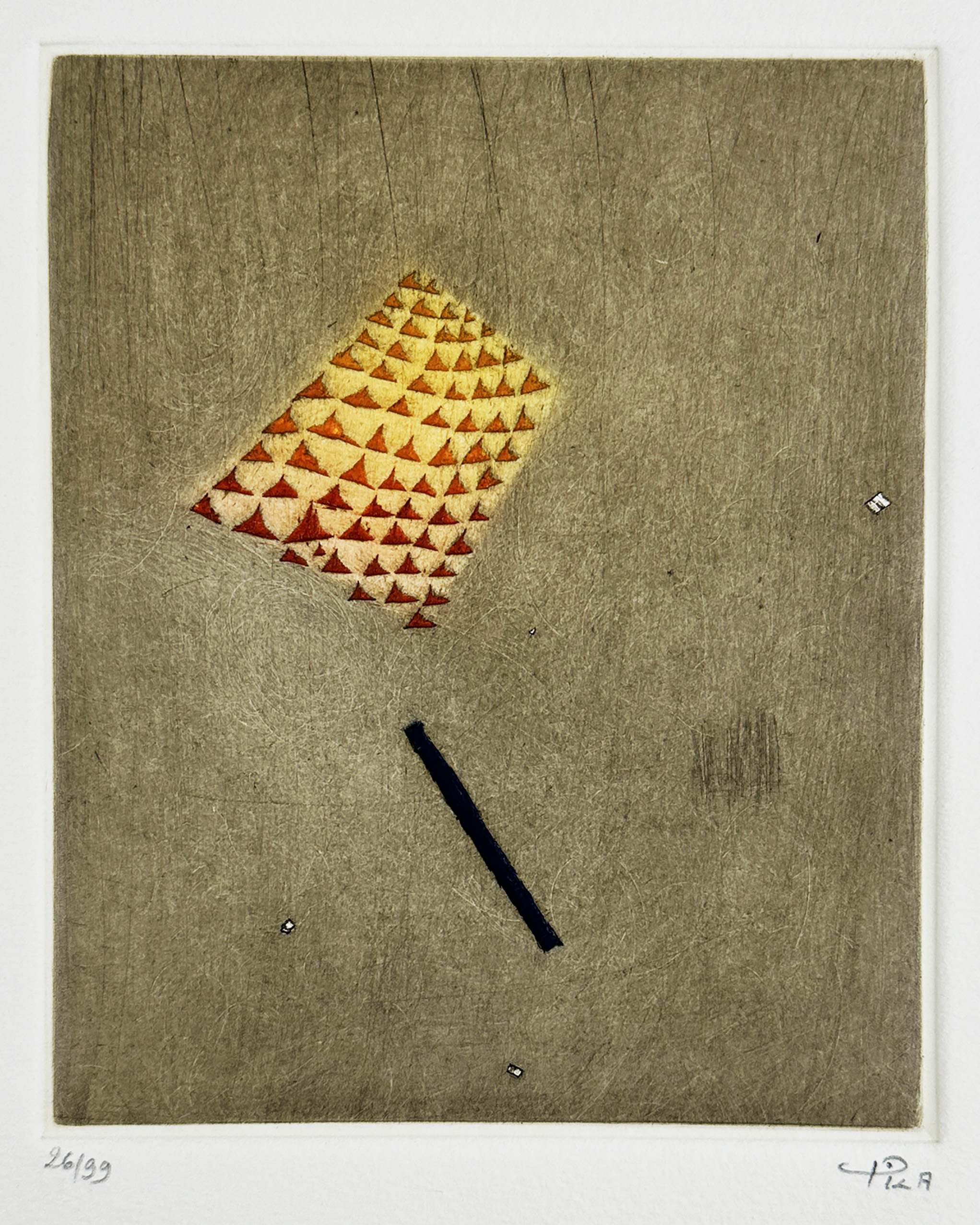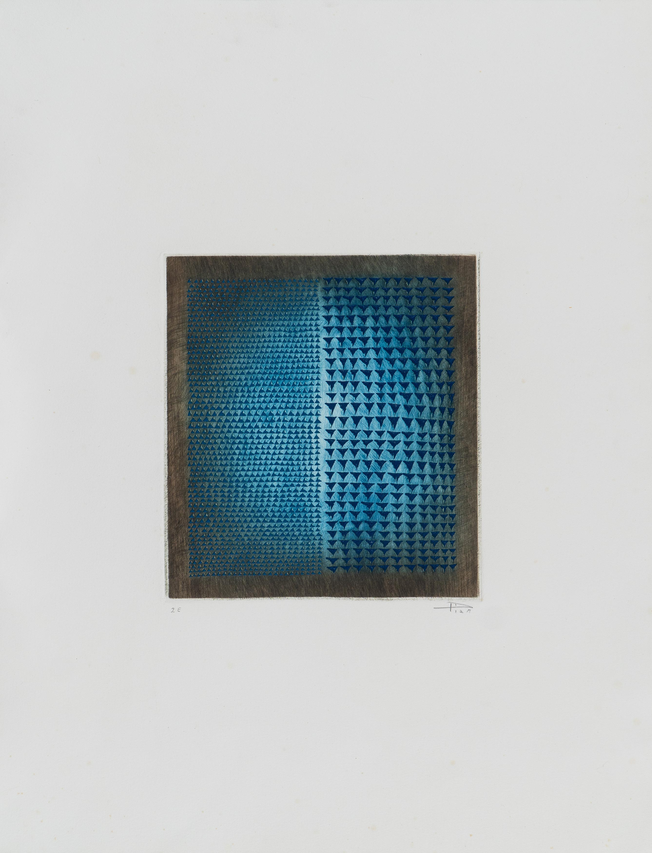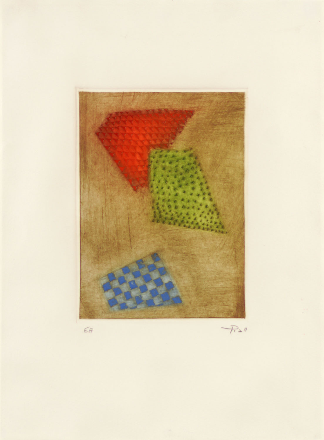 Arthur Luiz Piza (São Paulo SP 1928). Gravador, desenhista e escultor. Inicia a formação artística em 1943, estudando pintura e afresco com Antonio Gomide (1895 - 1967). Após participar da 1ª Bienal Internacional de São Paulo, em 1951, viaja para a Europa e passa a residir em Paris. Freqüenta o ateliê de Johnny Friedlaender (1912 - 1992) e aperfeiçoa-se nas técnicas de gravura em metal, água-forte, talho-doce, água-tinta e ponta-seca. Em 1953, participa da 2ª Bienal Internacional de São Paulo e obtém o prêmio aquisição. Na 5ª Bienal, em 1959, é contemplado com o grande prêmio nacional de gravura. Nesse período, começa a fazer relevos, picotando suas aquarelas e aproveitando os fragmentos em colagens sobre tela, papel, cobre e madeira. Posteriormente cria relevos de metal sobre sisal, e produz peças tridimensionais em grande escala e trabalhos em porcelana e ourivesaria. Realiza ilustrações para diversos livros, de tiragens reduzidas. No fim dos anos 1980, cria um mural tridimensional para o Centro Cultural da França, em Damasco, Síria. Em 2002, são apresentadas na Pinacoteca do Estado de São Paulo - Pesp, e no Museu de Arte do Rio Grande do Sul Ado Malagoli - Margs, em Porto Alegre, duas amplas retrospectivas de sua obra.