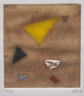 Arthur Luiz Piza (São Paulo SP 1928). Gravador, desenhista e escultor. Inicia a formação artística em 1943, estudando pintura e afresco com Antonio Gomide (1895 - 1967). Após participar da 1ª Bienal Internacional de São Paulo, em 1951, viaja para a Europa e passa a residir em Paris. Freqüenta o ateliê de Johnny Friedlaender (1912 - 1992) e aperfeiçoa-se nas técnicas de gravura em metal, água-forte, talho-doce, água-tinta e ponta-seca. Em 1953, participa da 2ª Bienal Internacional de São Paulo e obtém o prêmio aquisição. Na 5ª Bienal, em 1959, é contemplado com o grande prêmio nacional de gravura. Nesse período, começa a fazer relevos, picotando suas aquarelas e aproveitando os fragmentos em colagens sobre tela, papel, cobre e madeira. Posteriormente cria relevos de metal sobre sisal, e produz peças tridimensionais em grande escala e trabalhos em porcelana e ourivesaria. Realiza ilustrações para diversos livros, de tiragens reduzidas. No fim dos anos 1980, cria um mural tridimensional para o Centro Cultural da França, em Damasco, Síria. Em 2002, são apresentadas na Pinacoteca do Estado de São Paulo - Pesp, e no Museu de Arte do Rio Grande do Sul Ado Malagoli - Margs, em Porto Alegre, duas amplas retrospectivas de sua obra.