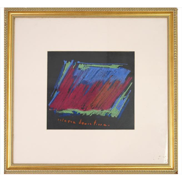 Já o pastel oleoso de MARIA LEONTINA (LOTE 35) mostra a potência da delicadeza. Em apenas 23 x 26 cm, a artista constrói uma atmosfera abstrata carregada de lirismo, onde cor e gesto sugerem silêncio e introspecção.