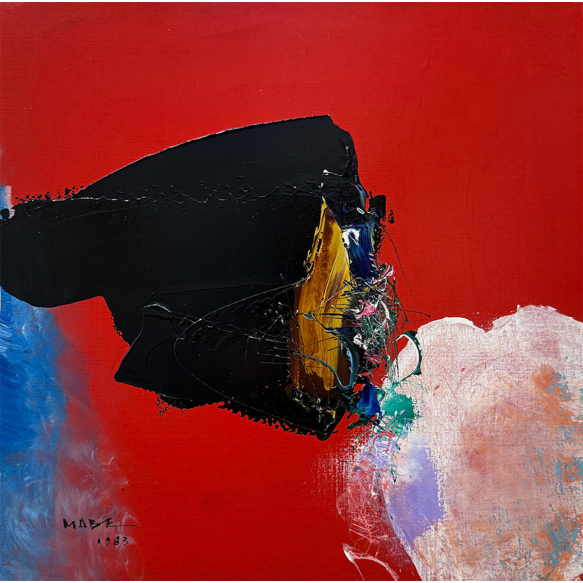 O óleo sobre tela de MANABU MABE (LOTE 80), registrado no Instituto Mabe, é um exercício de intensidade. Criada em 1983, a obra condensa a energia gestual do artista, unindo a tradição oriental à espontaneidade da pintura brasileira da segunda metade do século XX.