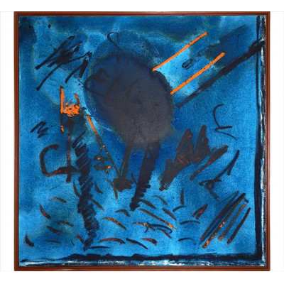 Artur Barrio - Lago Azul - 1974 - Técnica mista sobre papel - Assinado meio à esquerda - 31 x 46 cm.