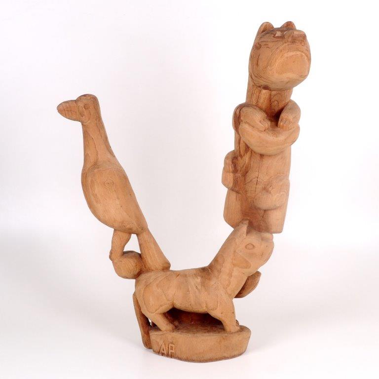 Artur Pereira - Coluna de animais - Pássaros e carneiros - 50 cm de altura - Escultura em madeira - Assinatura base