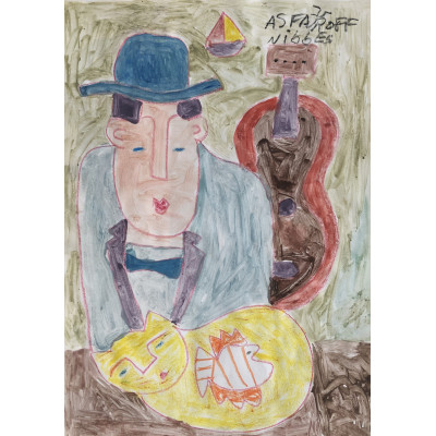 ASFADUROFF NIBBES, Les Musiciens - acrílica e encaústica sobre tela - 70x100 cm - Ass.