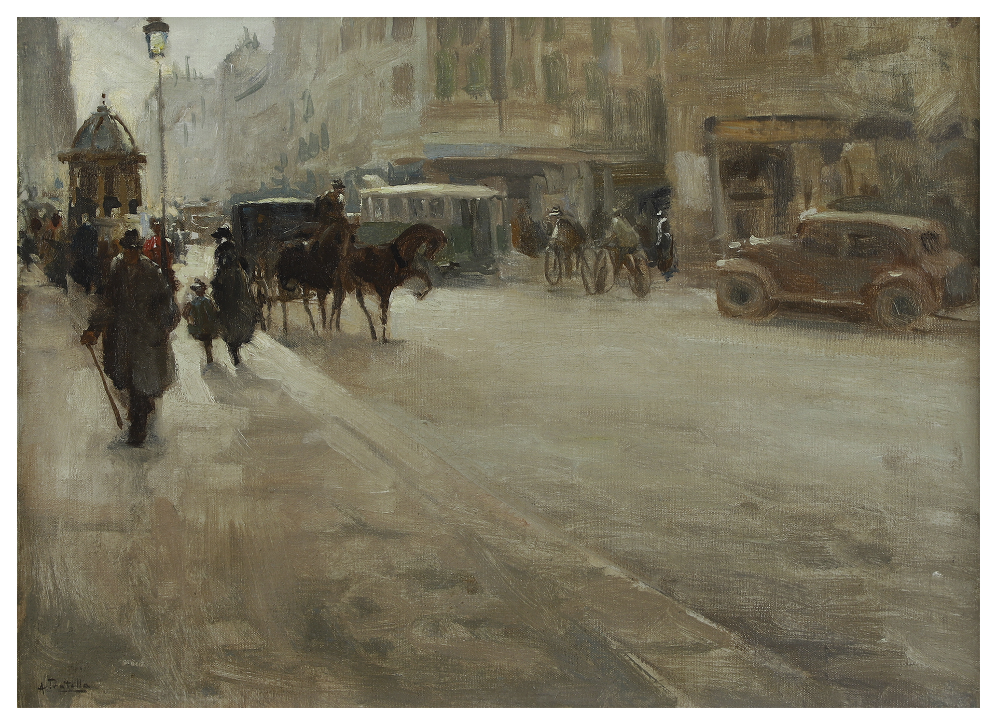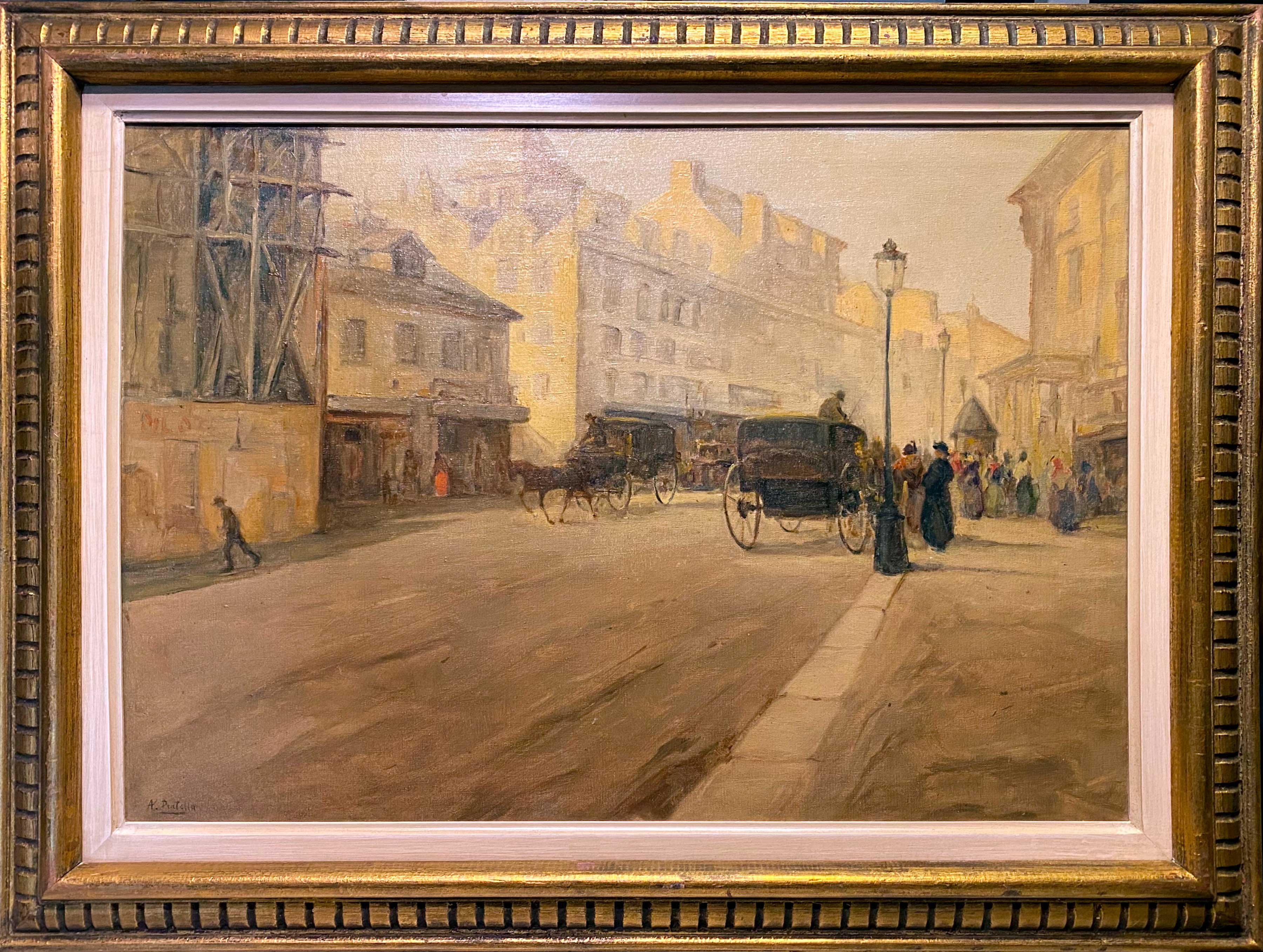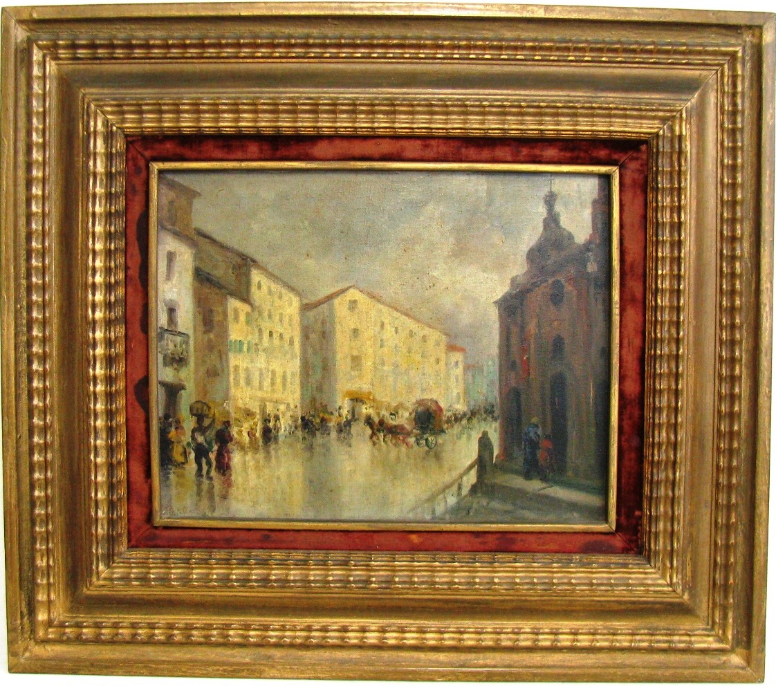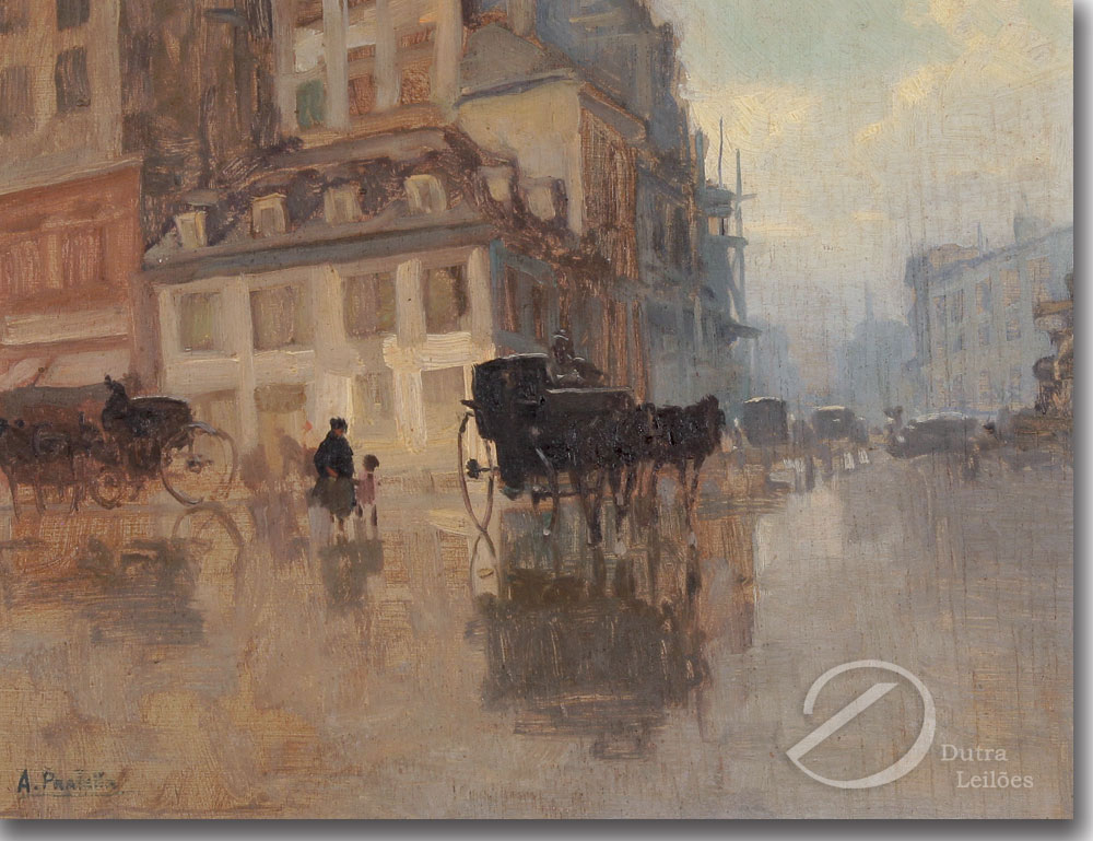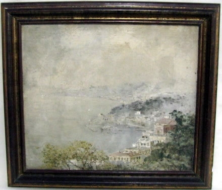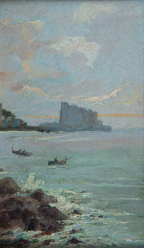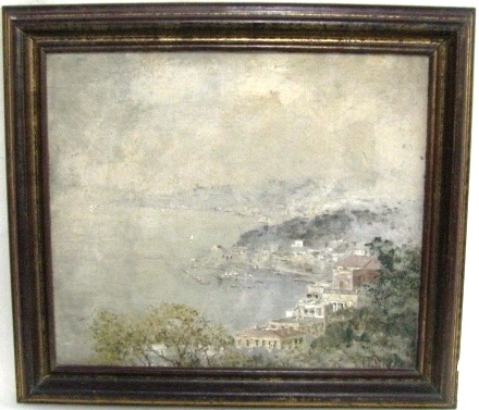 ATTILIO PRATELLA - (1856-1949) Marinha - OSM - Cid - 22 x 23 cm. Attilio Pratella (1856-1949) foi um pintor italiano especializado em paisagens e cenas urbanas de Nápoles. Nascido em Lugo di Romagna, formou-se na Accademia di Belle Arti de Bolonha e depois em Nápoles, onde estudou com mestres como Domenico Morelli. Radicado em Nápoles, dedicou-se a representar com grande sensibilidade o cotidiano da cidade, seus mercados, portos, bairros populares, além de vistas da ilha de Capri e da costa de Sorrento. Seu estilo combina elementos do naturalismo e do impressionismo, com pinceladas rápidas, tonalidades suaves e uma atenção refinada à luz e à atmosfera. Ele foi um dos principais nomes da escola napolitana de pintura no final do século XIX e início do XX. Participou de importantes exposições nacionais e internacionais, como a Bienal de Veneza o Salon de Paris, recebendo prêmios e reconhecimento. Obras como Di Mattina e Impressione di vento ilustram sua maestria em captar e cenas simples com profundidade estética e emocional. Pratella influenciou uma geração de artistas, inclusive seus filhos, que também seguiram carreira artística. Seu legado permanece presente em coleções públicas e privadas, sendo considerado um dos grandes cronistas visuais da Nápoles de seu tempo.