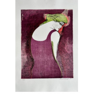 Augusto Rodrigues - Figura feminina - Técnica Mista - 36 x 28 - 1970 - Ass. Canto inferior esquerdo