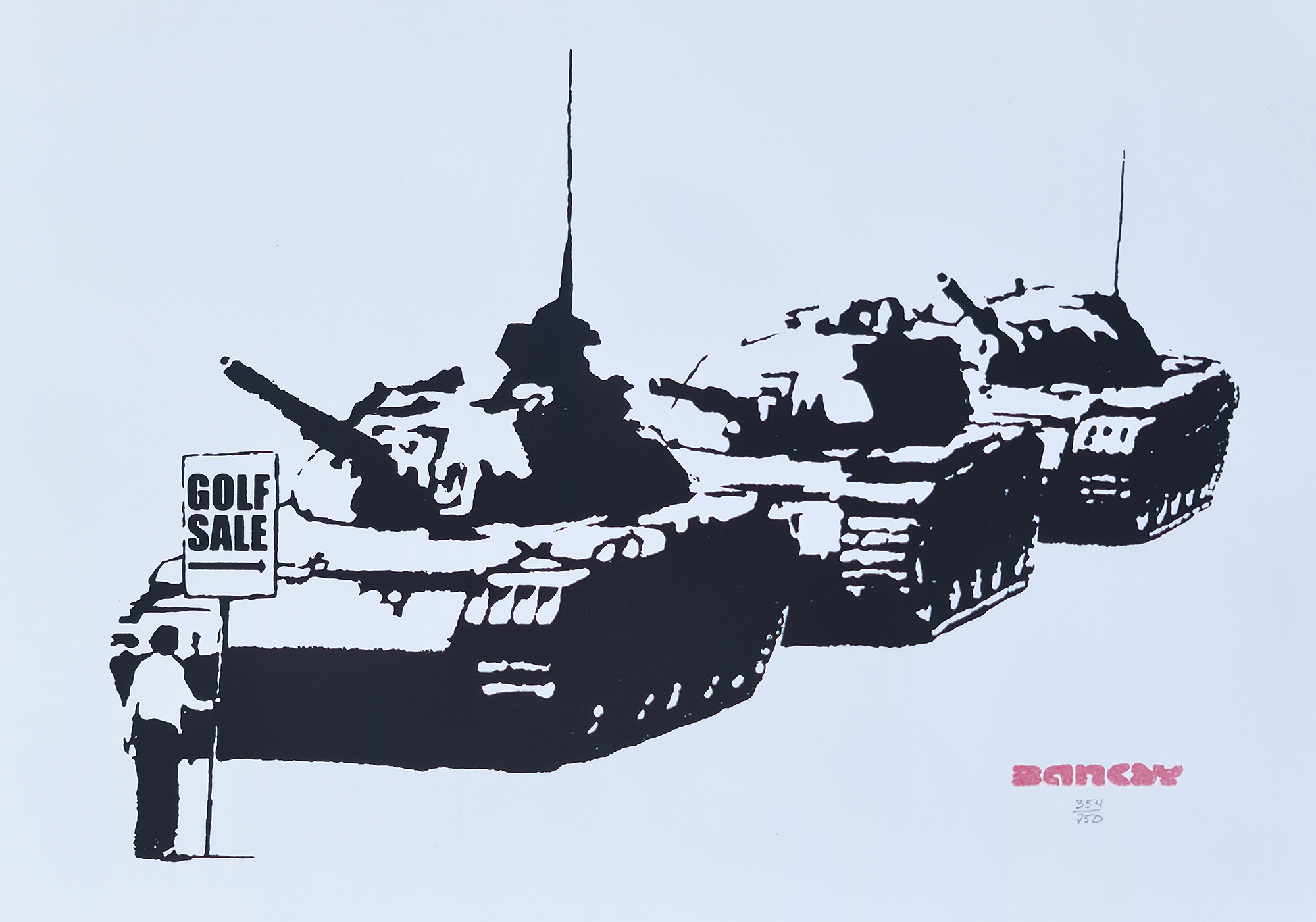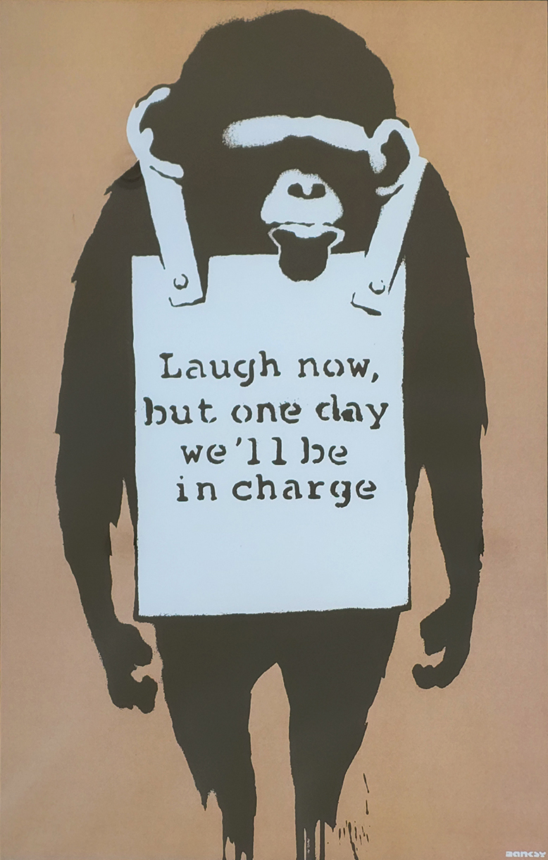 Banksy é o pseudônimo de um artista urbano britânico. É mundialmente conhecido pelas suas artes envolvendo críticas sociais, humor, e provocações diretas e indiretas a vários governos e organizações. Aborda temas como guerra, política, cultura popular, entre outros.