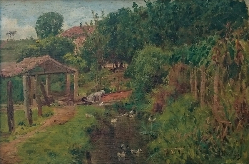 João Baptista da Costa (Itaguaí RJ 1865 - Rio de Janeiro RJ 1926). Pintor, desenhista, professor. Inicia sua formação artística em 1877 no  Asilo dos Meninos Desvalidos, Rio de Janeiro, onde estuda desenho com Antônio de Souza Lobo (1840 - 1909). Em 1885, ingressa na Academia Imperial de Belas Artes - Aiba, e é aluno de Zeferino da Costa (1840 - 1915), José Maria de Medeiros (1849 - 1925) e Rodolfo Amoedo (1857 - 1941). Em 1894, recebe o prêmio de viagem ao exterior na 1ª Exposição Geral de Belas Artes. Vai para a Europa e, em 1897, estuda com Jules Joseph Lefebvre (1836 - 1912) e Tony Robert-Fleury (1837 - 1911) na Académie Julian, em Paris. Em 1906, torna-se professor da Escola Nacional de Belas Artes - Enba, substituindo Rodolfo Amoedo na cadeira de pintura; tem como alunos Candido Portinari (1903 - 1962), Orlando Teruz (1902 - 1984) e Quirino Campofiorito (1902 - 1993), entre outros. De 1915 até 1926 assume a direção da Enba.