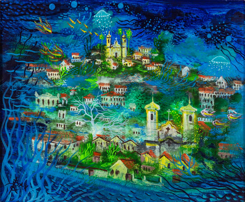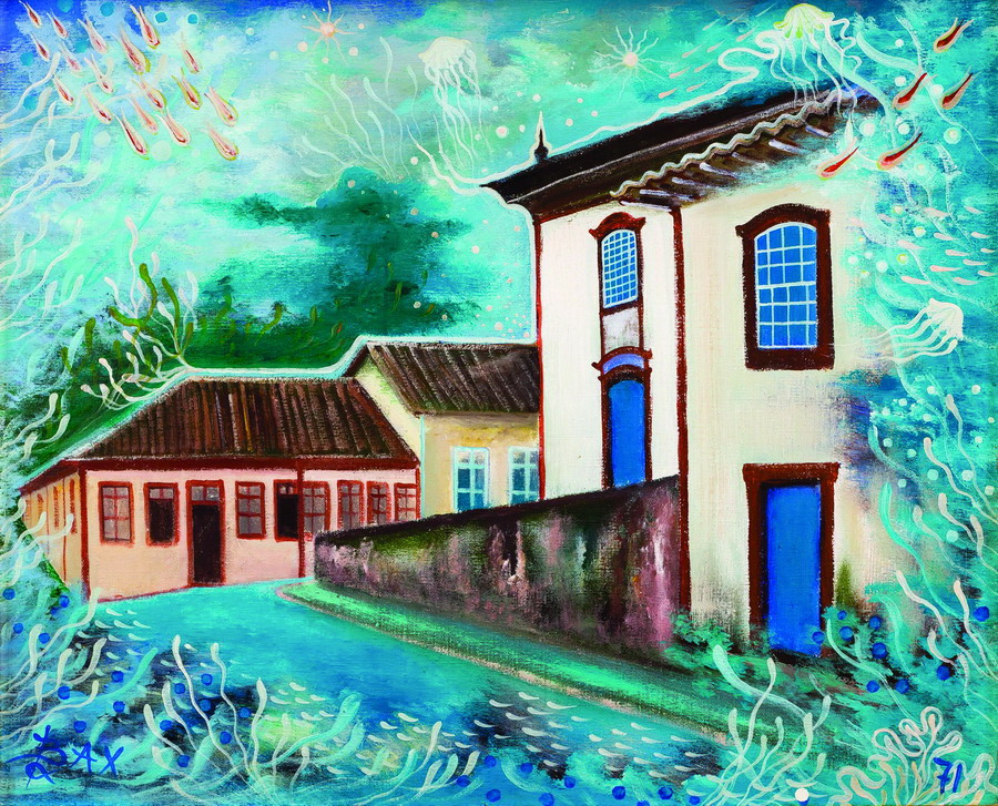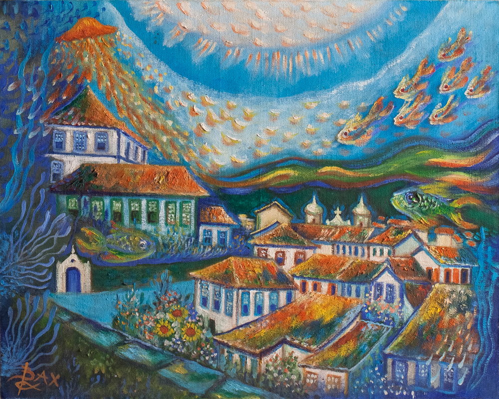 Bax - Igreja São Francisco de Assis - 73 x 60 cm - Óleo sobre tela - Assinatura canto inferior direito e Data 1976 - Obra reproduzida no livro do artista