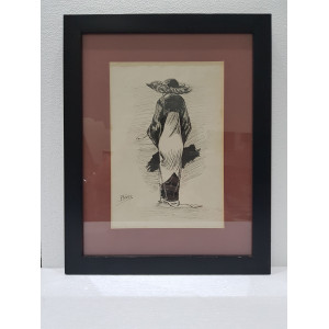 Belmiro de Almeida. Figura Feminina com Chapéu. Nanquim e aquarela, 30 cm x 20 cm. Assinado embaixo à esquerda: Belmiro. Origem: ex-coleção Maria Helena e Eldino F. Brancante.