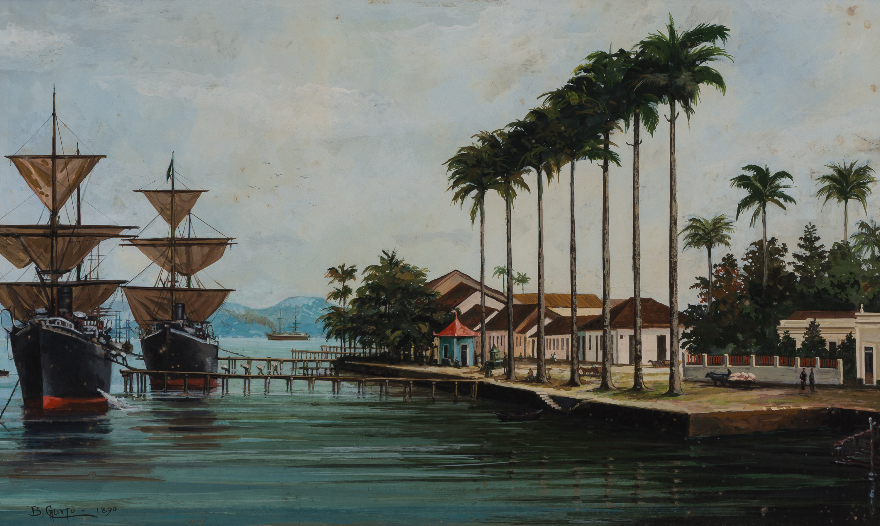 Benedito Calixto - Porto de Santos - 26 x 40 cm - Guache sobre papel - Assinatura canto inferior direito - Acompanha certificado de autenticidade emitido pelo Celso Calixto e a obra está reproduzida no catalogo da Soraia Cals do leilão realizado nos dias 09 e 10 de Setembro de 2015