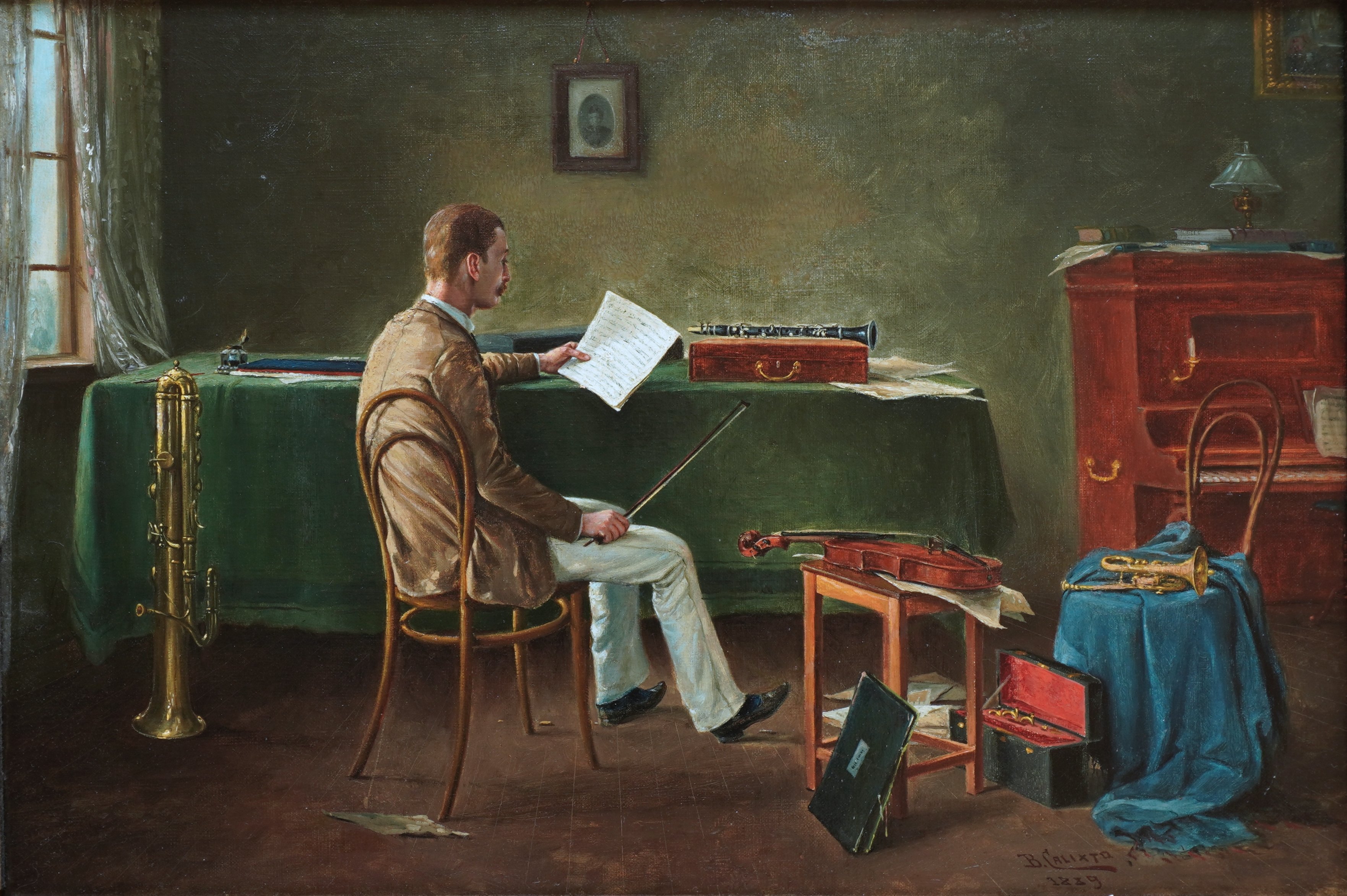 Em 1882, a sorte bate em sua porta. É convidado a realizar trabalhos de entalhe e pintura na parte interna do Teatro Guarany, em Santos, o que lhe rendeu homenagens e uma bolsa de estudos, custeada por Nicolau de Campos Vergueiro, o Visconde de Vergueiro, para se aprimorar em Paris, onde fica por quase um ano e frequenta o ateliê do mestre Rafaelli e a Academia Julian. Na Europa, realizou várias exposições de sucesso. Em 1884, de volta à Santos, trouxe, na bagagem, um equipamento fotográfico e tornou-se pioneiro, no Brasil, em pintar a partir de fotografias.