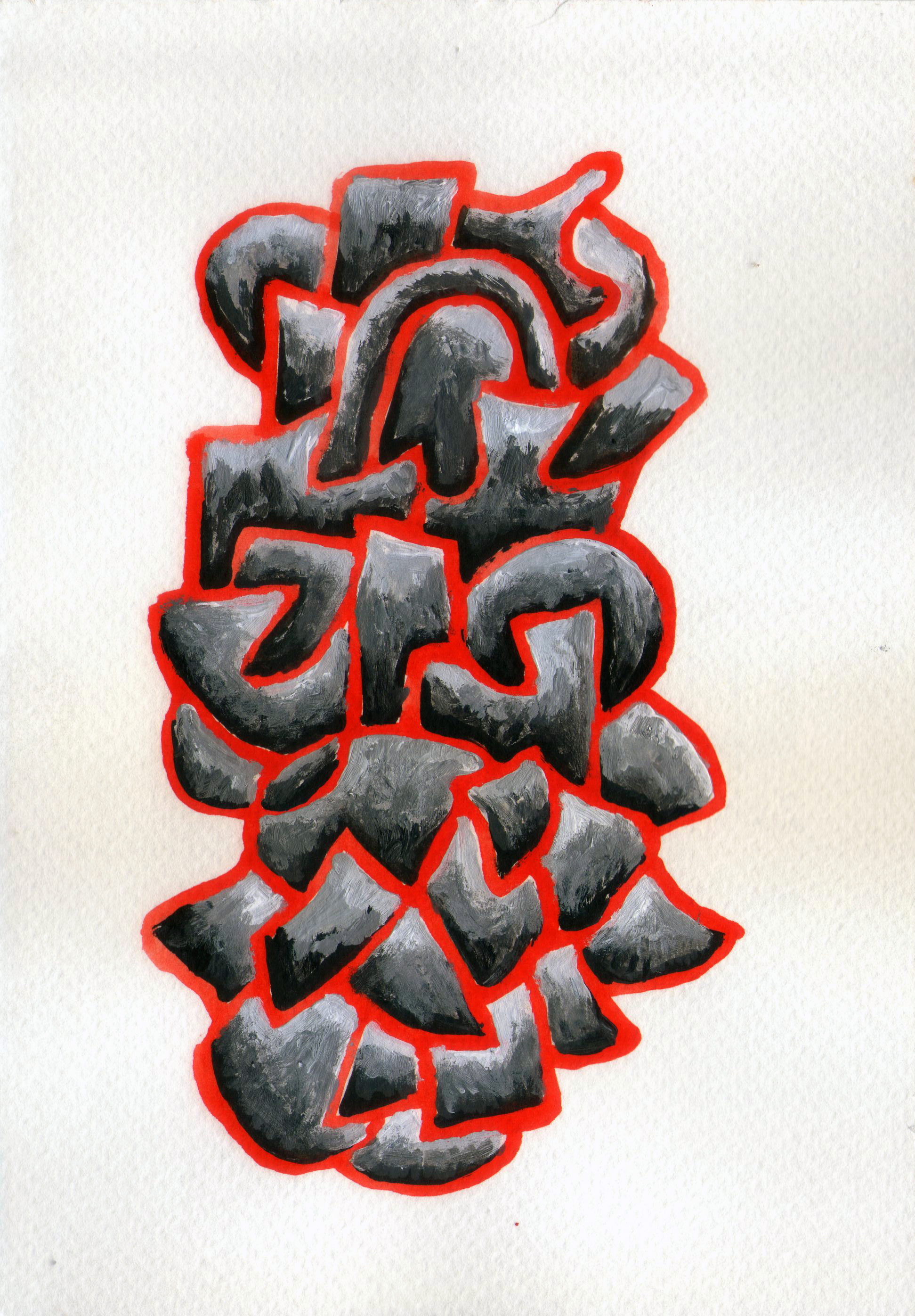 6. Às vezes as formas parecem hieróglifos, pequenos símbolos, sinais. Escrituras de decifração impossível.