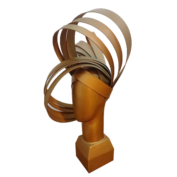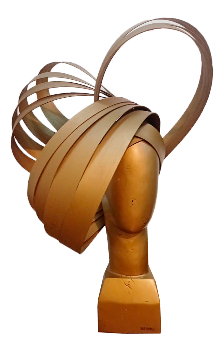 BIA DÓRIA, Série Cabeças - escultura em madeira patinada em dourado - 70x55 cm - Assinada