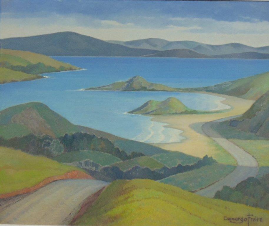 Em 1948 Camargo Freire fez parte do primeiro corpo docente da primeira escola de ensino médio de Campos do Jordão. O Ginásio de Campos do Jordão funcionou, em 1948, no prédio do Grupo Escolar Domingos Jaguaribe, sob a direção do professor Theodoro Corrêa Cintra. No ano seguinte, o Ginásio funcionou na Vila Dom Bosco, dos padres salesianos e, em 1950, em prédio na Vila Suíça. Carinhoso e exigente, Camargo Freire marcou a vida de seus alunos; suas aulas, mais que de Desenho, eram carregadas de belas lições de vida, muitas delas perenizadas nas lembranças de seus alunos. Nos seus alunos, Camargo Freire procurava despertar o “dom” para o desenho e pintura: Freqüentemente ouvimos de nossos alunos, quando examinamos os seus cadernos, esta explicação, à guisa de desculpas:-” “Eu não tenho dom para desenho. Meu pai diz que para desenhar ou pintar é preciso ter dom...” Será mesmo verdadeira está afirmação? Vejamos?, pois, como deve ser encarada essa questão, não apenas pelos que possuem o dom, mas principalmente, pelos que afirmam não possuí-lo. Na arte, o dom desempenha um papel importante,muito mais que em qualquer outra profissão. Essencialmente, o artista é constituído pelo dom, quer seja nas artes plásticas, quer seja na música ou nas letras. Um homem que não tem particular vocação para a Medicina, a Engenharia ou o Direito, sendo inteligente e devotado,poderá fazer uma bela carreira de médico, engenheiro ou jurista. Nas artes isso é impossível, pois nem a inteligência mais sutil nem o trabalho mais dedicado poderão jamais substituir o dom. Esse dom é dote natural que nasce com o artista e que não pode ser transmitido a ninguém através do ensino. Qualquer pessoa poderá aprender o desenho, a pintura ou a música mas nunca será um artista se não tiver o dom. Por sua vez, o artista nato terá que estudar e trabalhar para desenvolver cada vez mais suas qualidades naturais. Aprender a desenhar e pintar não é a mesma coisa que fazer uma cadeira ou uma bicicleta, decorar os rios da Europa ou as propriedades do ácido sulfúrico. Isto porque não se trata de armazenar fatos na memória. Aprender a desenhar e pintar é representar o que vemos ou imaginamos. É exprimir o que sentimos por meio das linhas e das cores. É dominar o “métier”, conhecendo a técnica de todos os elementos indispensáveis para melhor realizar uma obra de arte. Somente o dom não é o bastante para o artista expressar suas emoções, como provam as várias tendências da arte moderna, cada uma delas com uma técnica própria, com suas leis, sem as quais não seria possível representá-las. O impressionismo, apenas para citar um exemplo, foi um movimento que deu inicio à revolução artística. Para se opor a esta escola, o cubismo surgiu com sua técnica completamente contrária aos princípios preconizados pelos impressionistas. Nenhum artista poderá ignorar estes movimentos renovadores e para isso terá que estudá-los. Particularmente, sou fiel aos princípios clássicos da pintura e não tenho para com os modernos as expressões duras que de muitos se ouvem por aí. Não lhes sou contra. Nem lhes sou a favor. Para mim, todas as escolas e tendências cabem dentro de dois grupos, os únicos que, para mim, devem ser tomados em consideração: a boa e a má pintura. Só vejo mal ao modernismo: é que ele permitiu, com o aparecimento de artistas geniais como Portinari, que viesse uma enxurrada de mediocridade, fazendo mais barulho que pintura. É fácil explicar o fenômeno: imagina um sujeito que, sem nunca haver estudado música, apanhasse um saxofone e saísse pelas ruas a soprar no instrumento, proclamando-se um gênio da hora que passa. Poderia esse homem ser tomado a sério? Seria olhado como caso de policia ou de hospício. Não lhe parece? Mas há saxofonistas da pintura que vivem soltos pela cidade... Os que não são dotados dessa coisa divina que chamamos dom, poderão aprender desenho, chegando mesmo a ser reputados grandes desenhistas.