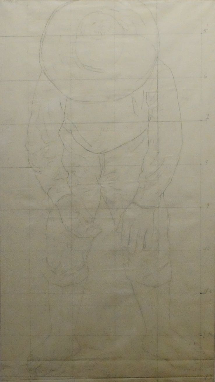 CANDIDO PORTINARI ASSISTA O VIDEO Desenho a grafite, "Homem visto de cima", Assinado pelo projeto PORTINARI, Número do registro FCO 510/0249A Medidas: 23 x 16 cm. Com moldura: 57,5 x 50 cm.