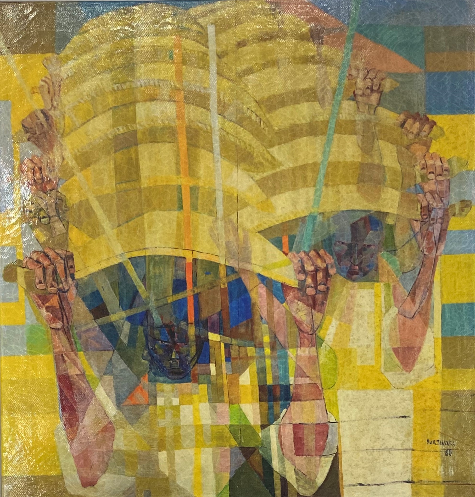 1947-1954: Participante da intelectualidade brasileira numa época de notável mudança na atitude estética e na cultura do País e influenciado pelos problemas da nossa realidade nacional é levado à militância política e como consequência exilou-se no Uruguai. Em 1951 já o vemos de volta ao Brasil figurando com relevância na Iª. Bienal de São Paulo, em uma sala particular. Apareceram, porém os primeiros problemas de saúde; o mais grave em 1954 caracterizado como uma grave intoxicação pelo chumbo presente nas tintas que usava.