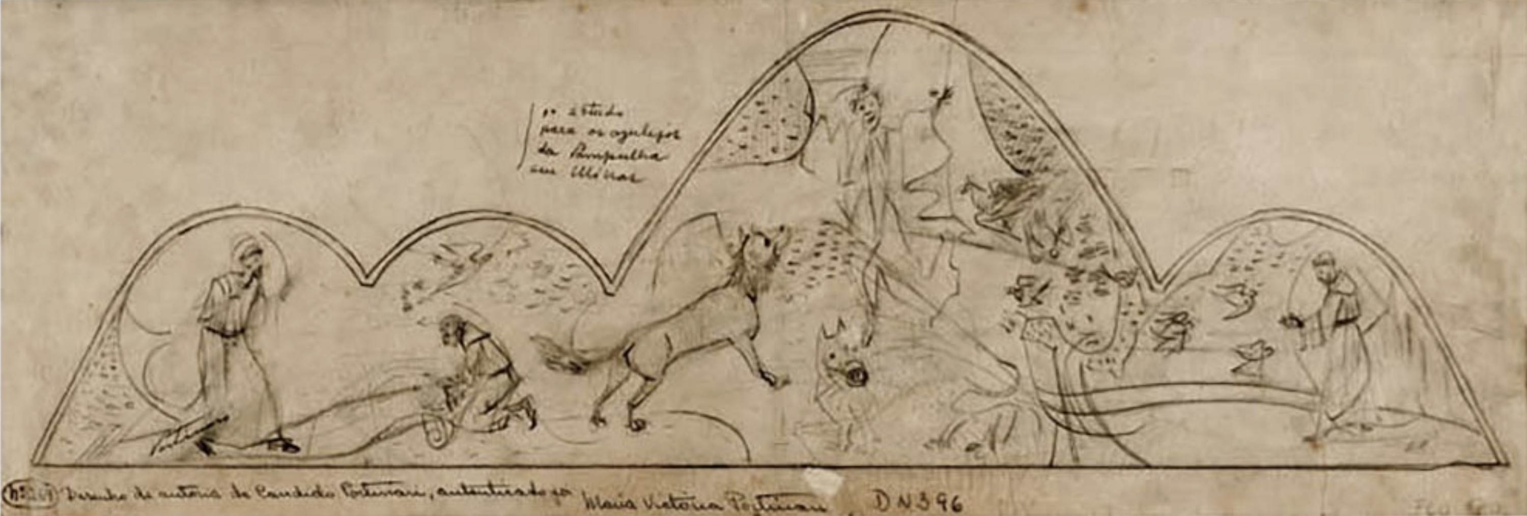 1937-1945: Vivíamos um período que insistentemente Gustavo Capanema – Ministro da Educação e Saúde Pública – queria dar visibilidade às propostas “modernas” que circulavam nos ambientes intelectuais da capital federal durante o Estado Novo, materializada através da construção de um “moderno” edifício para o MEC – Lúcio Costa, Oscar Niemeyer, et allis – e importante na vida de Portinari que compôs afrescos mostrando nosso “Ciclo Econômico” além dos cartões para os azulejos que revestem as paredes externas do edifício, que foram fabricados pela Osirarte, em São Paulo (1943, ca.). Em 1944, um acontecimento maior com a realização mural e azulejos sobre a vida de São Francisco para a Capela do Complexo da Pampulha em Belo Horizonte – leia-se Oscar Niemeyer – que completaria com a “Via Sacra” em 1945[6].