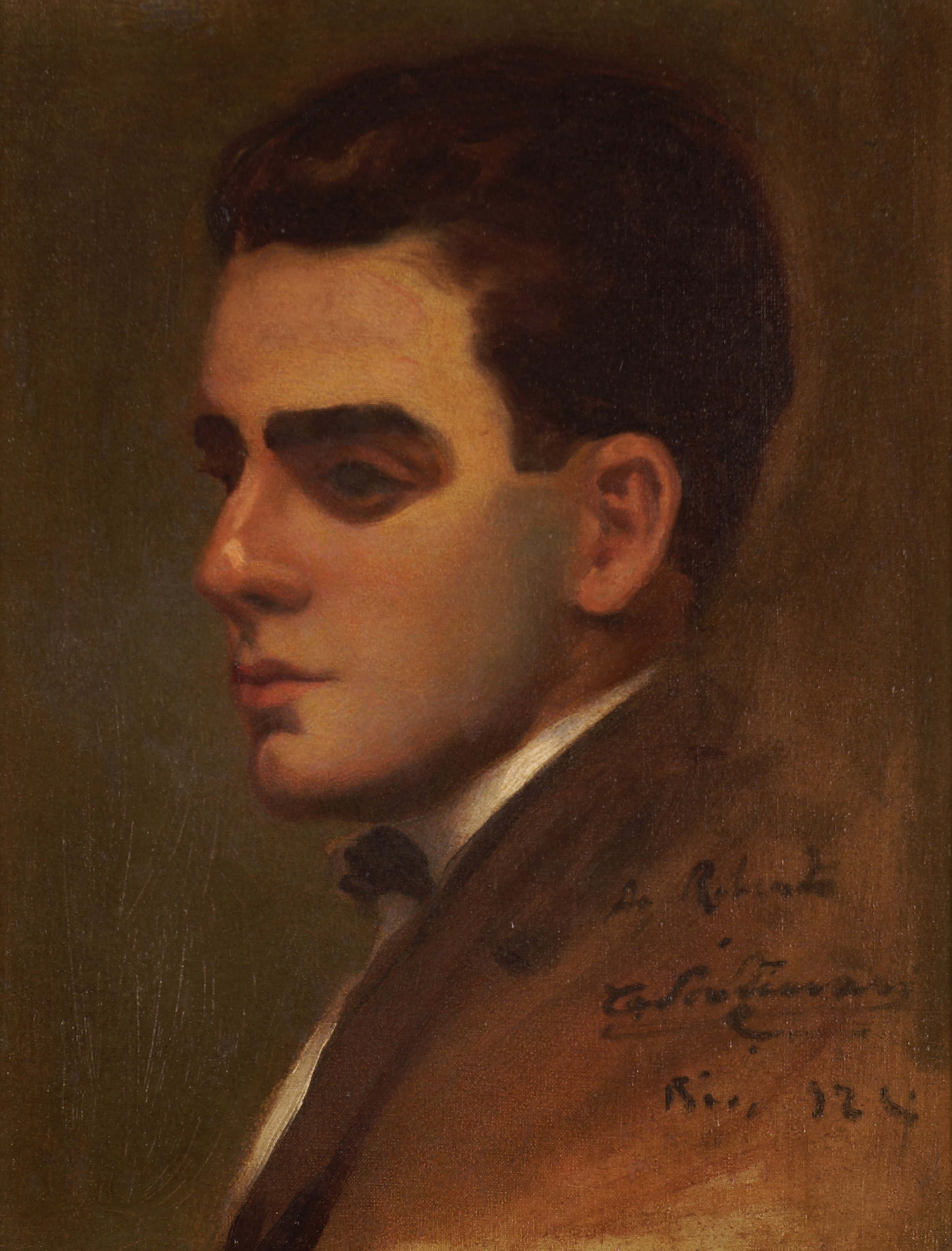 1922-1928: Desde 1922, Portinari concorria sempre aos “Salões” com retratos de seus amigos, que inicialmente passaram inobservados, até que o retrato de Paulo Mazuchelli lhe rendeu alguns prêmios. Naquele 1928 Portinari, com o retrato do poeta Olegário Mariano[4], ganhou o prêmio de Viagem ao Estrangeiro; partiu para Paris e visitou – 1929-1930 – visitando também a Inglaterra, a Itália e a Espanha, percorrendo museus e galerias. Declarou antes de sua partida: “entendo que a estadia na Europa não deve ser aproveitada pelo pintor para uma produção intensa e quase nada meditada, como têm feito alguns colegas. Considero-o um prêmio de observação. O que vou fazer é observar, pesquisar, tirar da obra dos grandes artistas – do passado nos museus, ou do presente nas galerias – os elementos que melhor se prestem à afirmação de uma personalidade. Procurarei encontrar o caminho definitivo de minha arte fazendo estudos e nunca quadros grandes... .”
