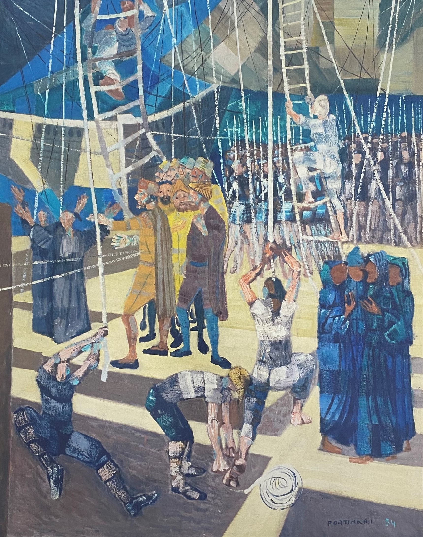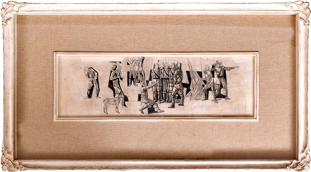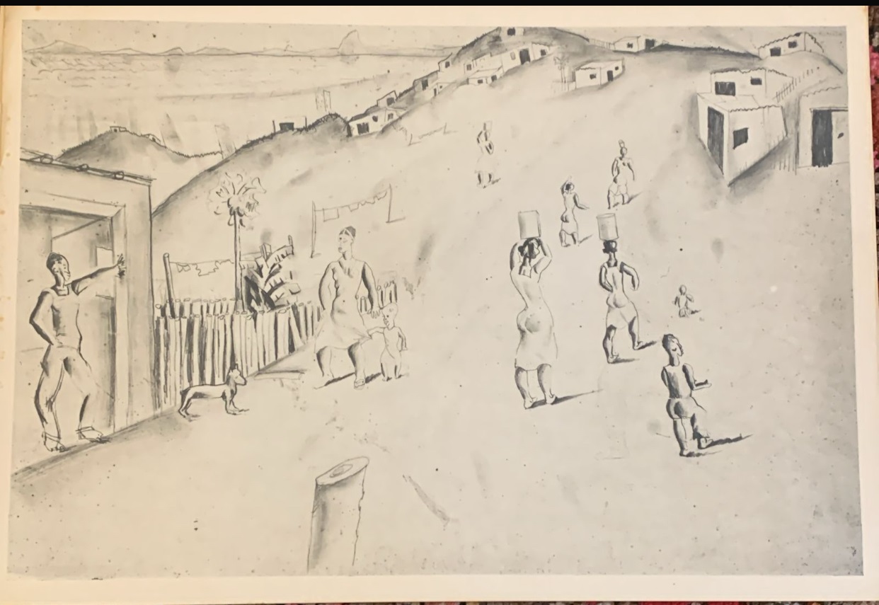 1937-1945: Vivíamos um período que insistentemente Gustavo Capanema – Ministro da Educação e Saúde Pública – queria dar visibilidade às propostas “modernas” que circulavam nos ambientes intelectuais da capital federal durante o Estado Novo, materializada através da construção de um “moderno” edifício para o MEC – Lúcio Costa, Oscar Niemeyer, et allis – e importante na vida de Portinari que compôs afrescos mostrando nosso “Ciclo Econômico” além dos cartões para os azulejos que revestem as paredes externas do edifício, que foram fabricados pela Osirarte, em São Paulo (1943, ca.). Em 1944, um acontecimento maior com a realização mural e azulejos sobre a vida de São Francisco para a Capela do Complexo da Pampulha em Belo Horizonte – leia-se Oscar Niemeyer – que completaria com a “Via Sacra” em 1945[6].