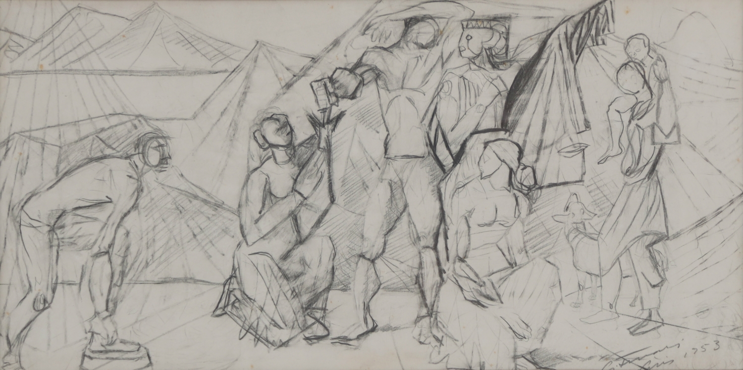 CANDIDO PORTINARI, Passagem da Via Sacra, Técnica Mista sobre Papel, ACID, 52 x 46cm (m.i)
