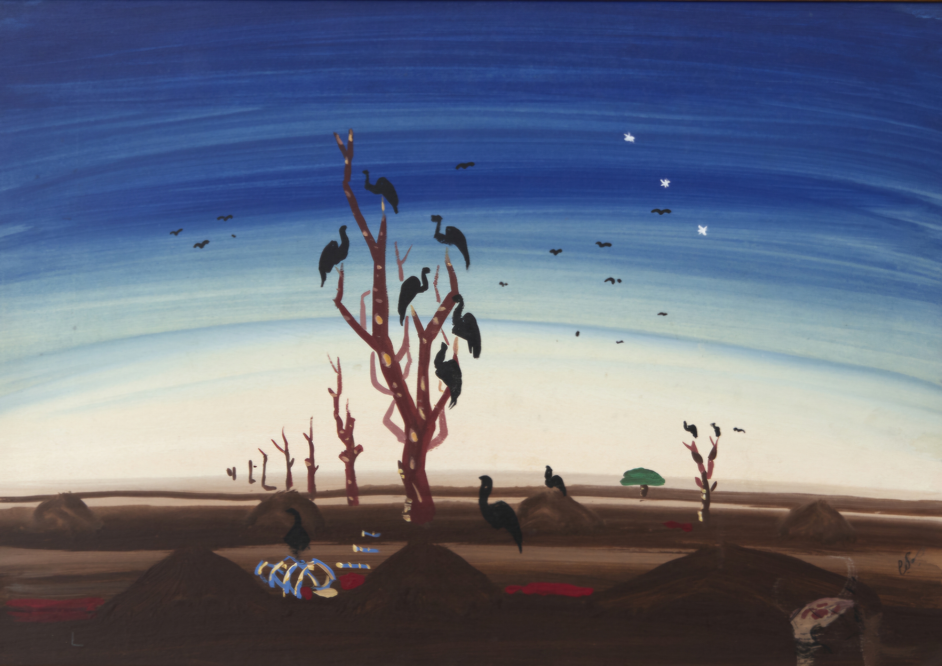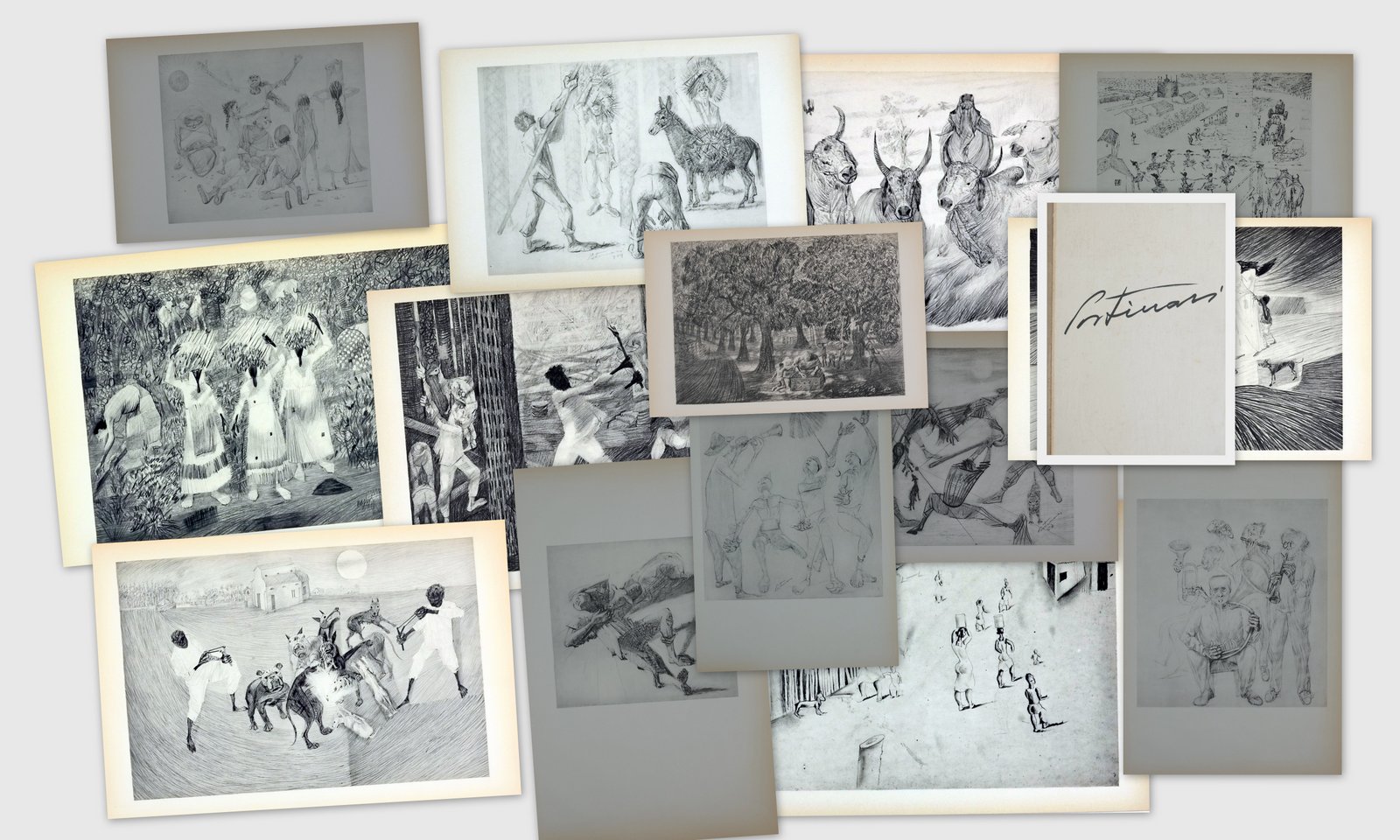 Portinari, Cândido. Sertão. Reprodução fotomecânica, 29,5 cm x 39,5 cm. Assinado e datado embaixo ao centro: Portinari 954. Origem: espólio de Cárbia Sabatel Bourroul e José Celestino Monteiro de Barros Bourroul.