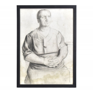 Gravura de Portinari retratando sua mãe Dona Dominga, assinado no canto inferior direito, 1941.