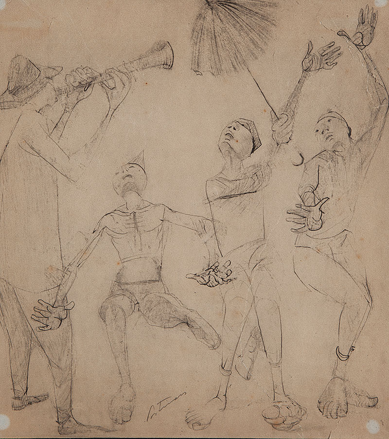 Portinari, Cândido. Músicos. Reprodução fotomecânica, 31,5 cm x 29 cm. Sem assinatura. Origem: espólio de Cárbia Sabatel Bourroul e José Celestino Monteiro de Barros Bourroul.