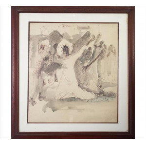 CANDIDO PORTINARI, Passagem da Via Sacra, Técnica Mista sobre Papel, ACID, 52 x 46cm (m.i)