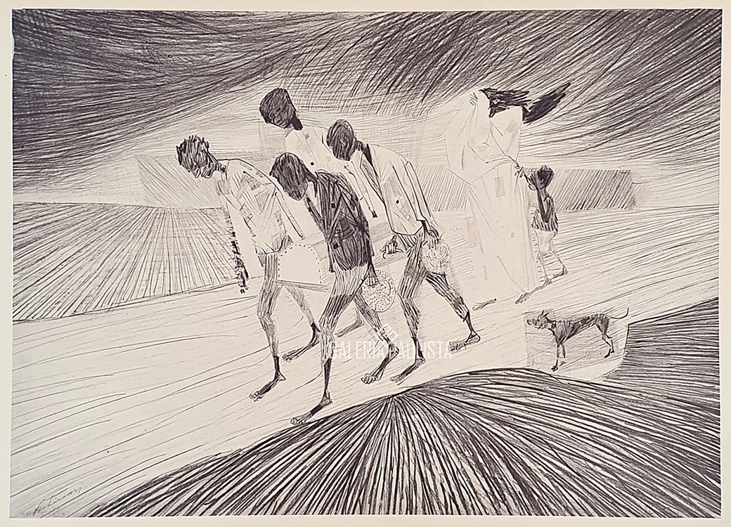 1947-1954: Participante da intelectualidade brasileira numa época de notável mudança na atitude estética e na cultura do País e influenciado pelos problemas da nossa realidade nacional é levado à militância política e como consequência exilou-se no Uruguai. Em 1951 já o vemos de volta ao Brasil figurando com relevância na Iª. Bienal de São Paulo, em uma sala particular. Apareceram, porém os primeiros problemas de saúde; o mais grave em 1954 caracterizado como uma grave intoxicação pelo chumbo presente nas tintas que usava.