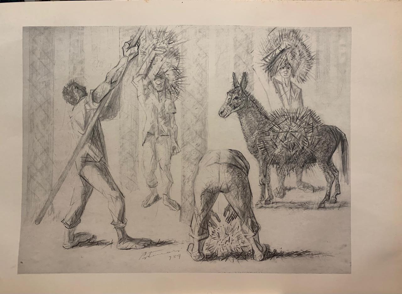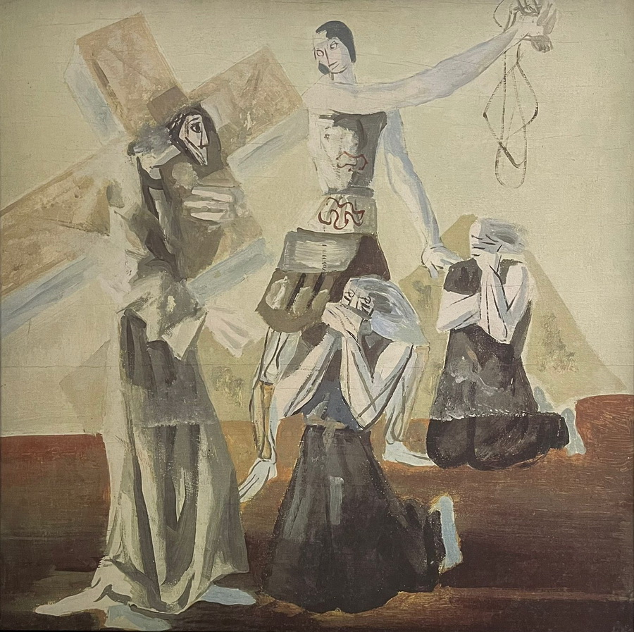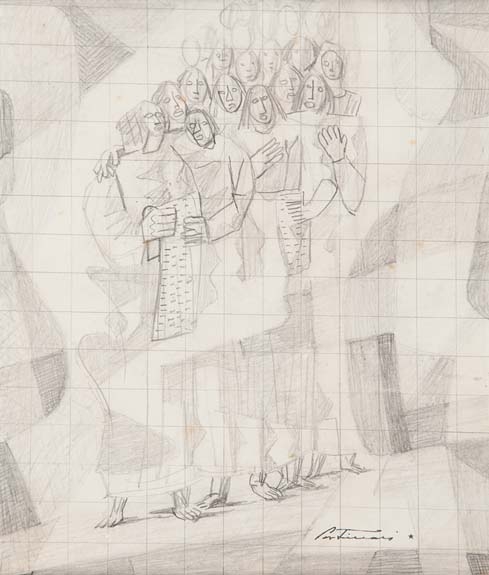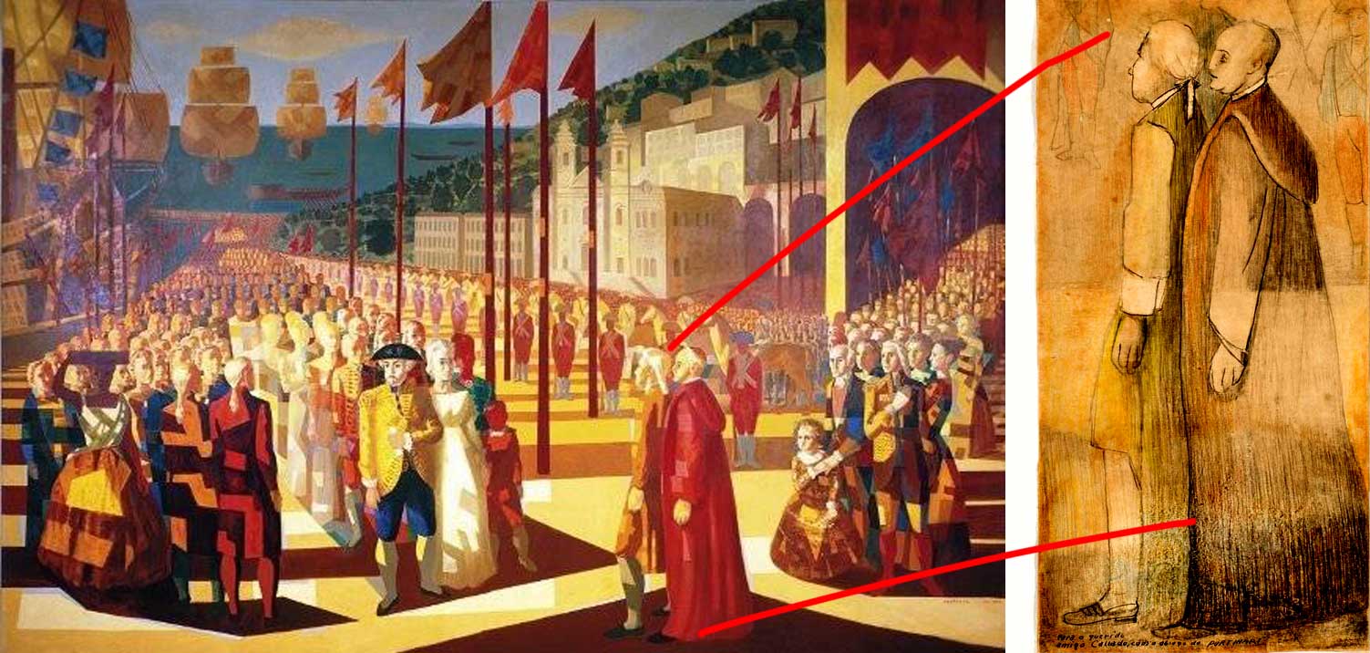 1937-1945: Vivíamos um período que insistentemente Gustavo Capanema – Ministro da Educação e Saúde Pública – queria dar visibilidade às propostas “modernas” que circulavam nos ambientes intelectuais da capital federal durante o Estado Novo, materializada através da construção de um “moderno” edifício para o MEC – Lúcio Costa, Oscar Niemeyer, et allis – e importante na vida de Portinari que compôs afrescos mostrando nosso “Ciclo Econômico” além dos cartões para os azulejos que revestem as paredes externas do edifício, que foram fabricados pela Osirarte, em São Paulo (1943, ca.). Em 1944, um acontecimento maior com a realização mural e azulejos sobre a vida de São Francisco para a Capela do Complexo da Pampulha em Belo Horizonte – leia-se Oscar Niemeyer – que completaria com a “Via Sacra” em 1945[6].