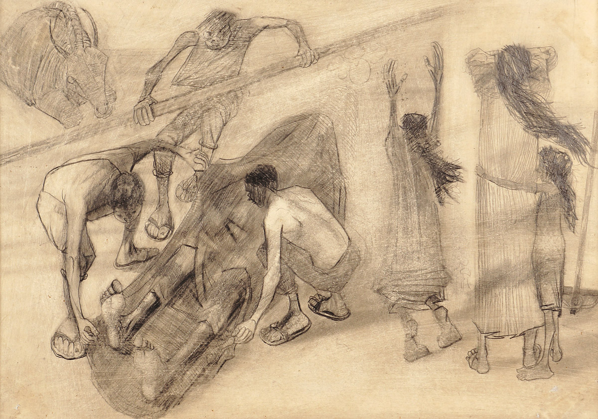 Menino e carneiro - Cândido Portinari - 26 x 26 - Gravura do álbum "Mestres do desenho", editora Cutrix, editado em 1962 - exemplar nº 0721