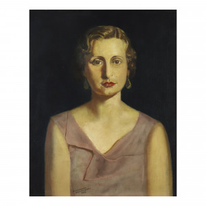 Cândido Portinari. Retrato de Elvira André. Óleo sobre tela, 61 cm x 50 cm. Assinado, localizado e datado na metade inferior, à esquerda: Portinari Brodowski 952. Registrado no Projeto Portinari FCO 2396. Reproduzido e descrito no Catálogo Raisonné do artista à página 380, volume III, nº 3147.