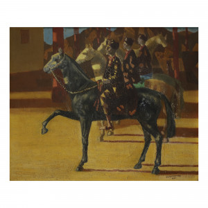 Candido Portinari. Destacamento da Coluna Prestes. Óleo sobre tela, 38 cm x 46 cm. Assinado e datado embaixo à esquerda: Portinari 951. Exposições, conforme descrito no Catálogo Raisonné: - 1969. Portinari em Campinas. Museu de Arte Contemporânea de Campinas "José Pancetti"; - 1993. Portinari 90 Anos. Jockey Club Brasileiro, Rio de Janeiro. Registrado no Projeto Portinari FCO 2395. Reproduzido e descrito no Catálogo Raisonne do artista à página 315, volume III, nº 2921.