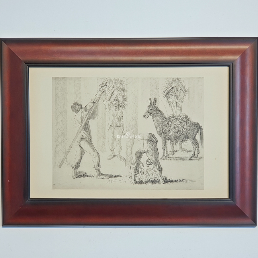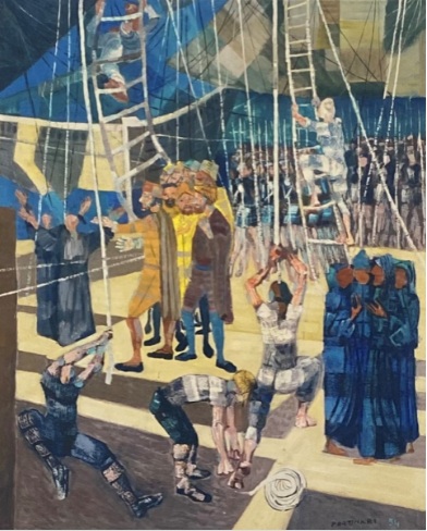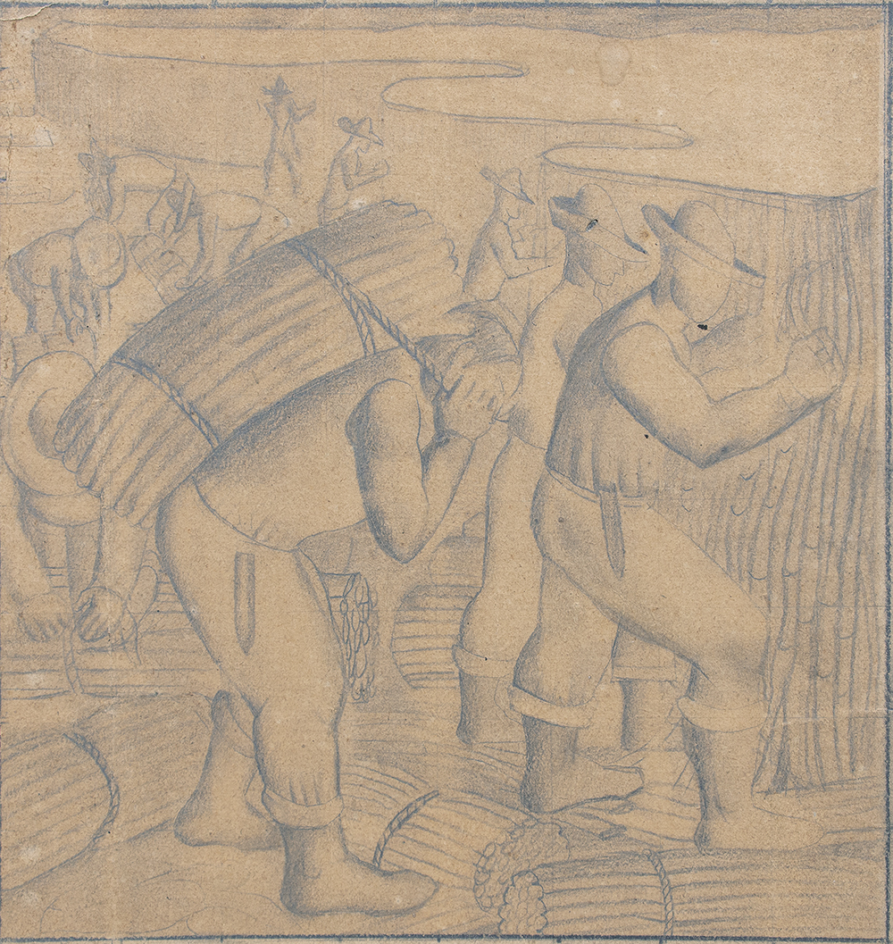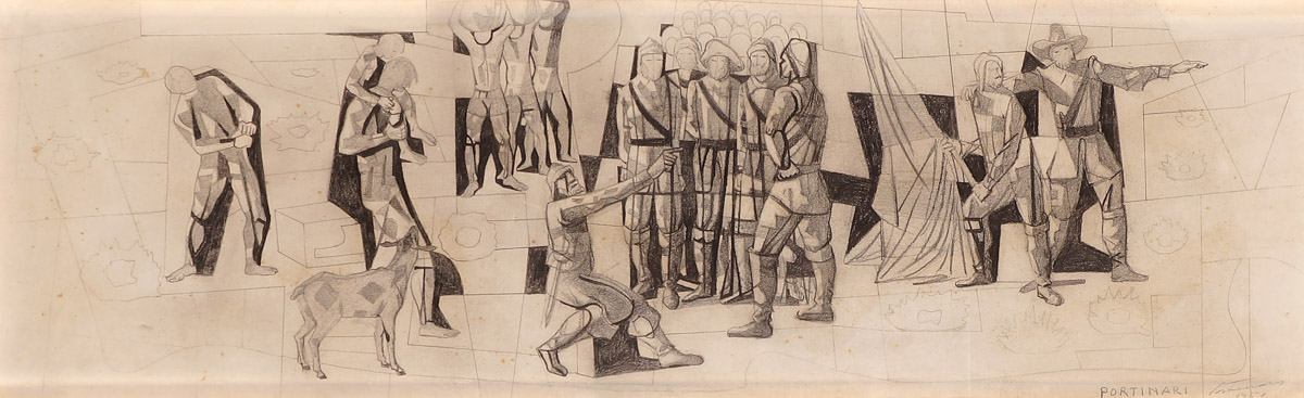 1937-1945: Vivíamos um período que insistentemente Gustavo Capanema – Ministro da Educação e Saúde Pública – queria dar visibilidade às propostas “modernas” que circulavam nos ambientes intelectuais da capital federal durante o Estado Novo, materializada através da construção de um “moderno” edifício para o MEC – Lúcio Costa, Oscar Niemeyer, et allis – e importante na vida de Portinari que compôs afrescos mostrando nosso “Ciclo Econômico” além dos cartões para os azulejos que revestem as paredes externas do edifício, que foram fabricados pela Osirarte, em São Paulo (1943, ca.). Em 1944, um acontecimento maior com a realização mural e azulejos sobre a vida de São Francisco para a Capela do Complexo da Pampulha em Belo Horizonte – leia-se Oscar Niemeyer – que completaria com a “Via Sacra” em 1945[6].