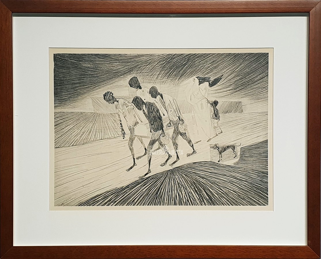 1947-1954: Participante da intelectualidade brasileira numa época de notável mudança na atitude estética e na cultura do País e influenciado pelos problemas da nossa realidade nacional é levado à militância política e como consequência exilou-se no Uruguai. Em 1951 já o vemos de volta ao Brasil figurando com relevância na Iª. Bienal de São Paulo, em uma sala particular. Apareceram, porém os primeiros problemas de saúde; o mais grave em 1954 caracterizado como uma grave intoxicação pelo chumbo presente nas tintas que usava.