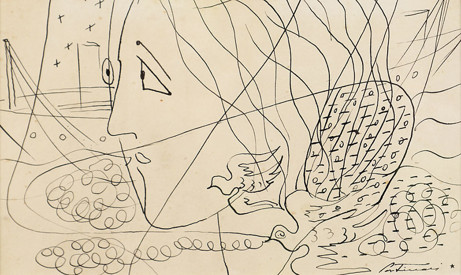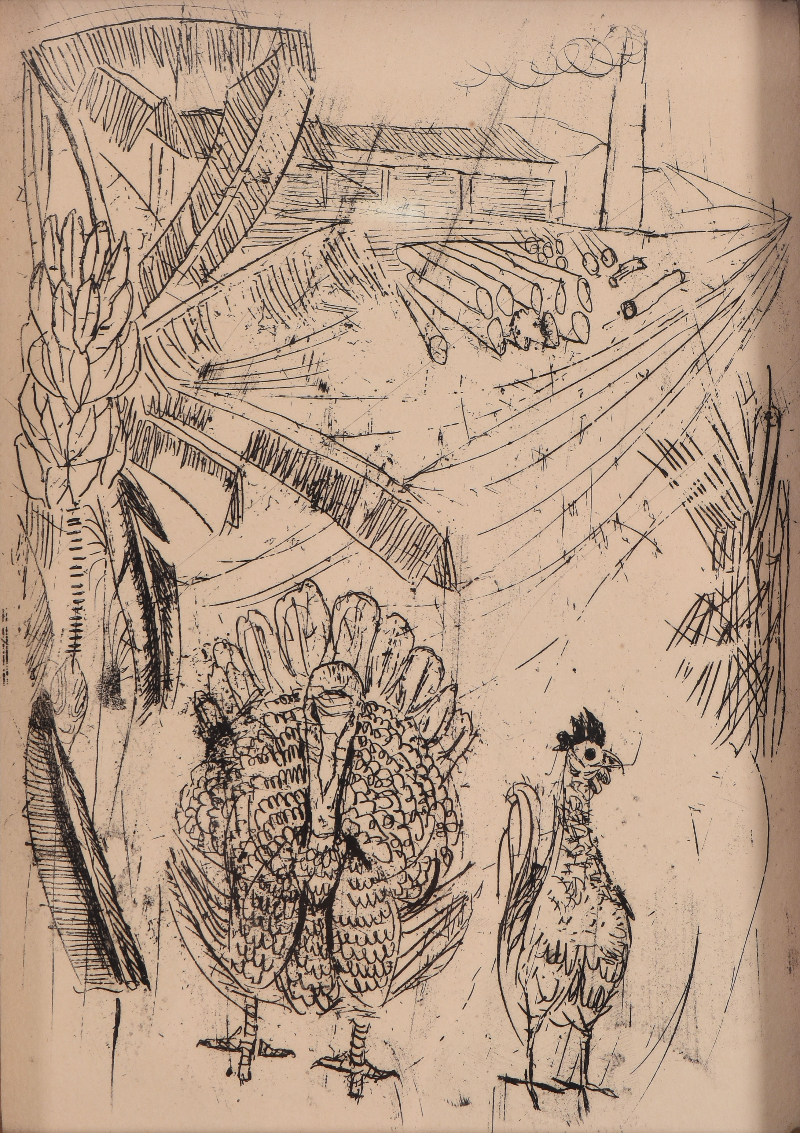 Cândido Portinari - Galo - 1970 - Grafite sobre cartão - Assinado canto inferior direito - 24 x 18 cm. Coleção Múcio Bandeira de Mello.
